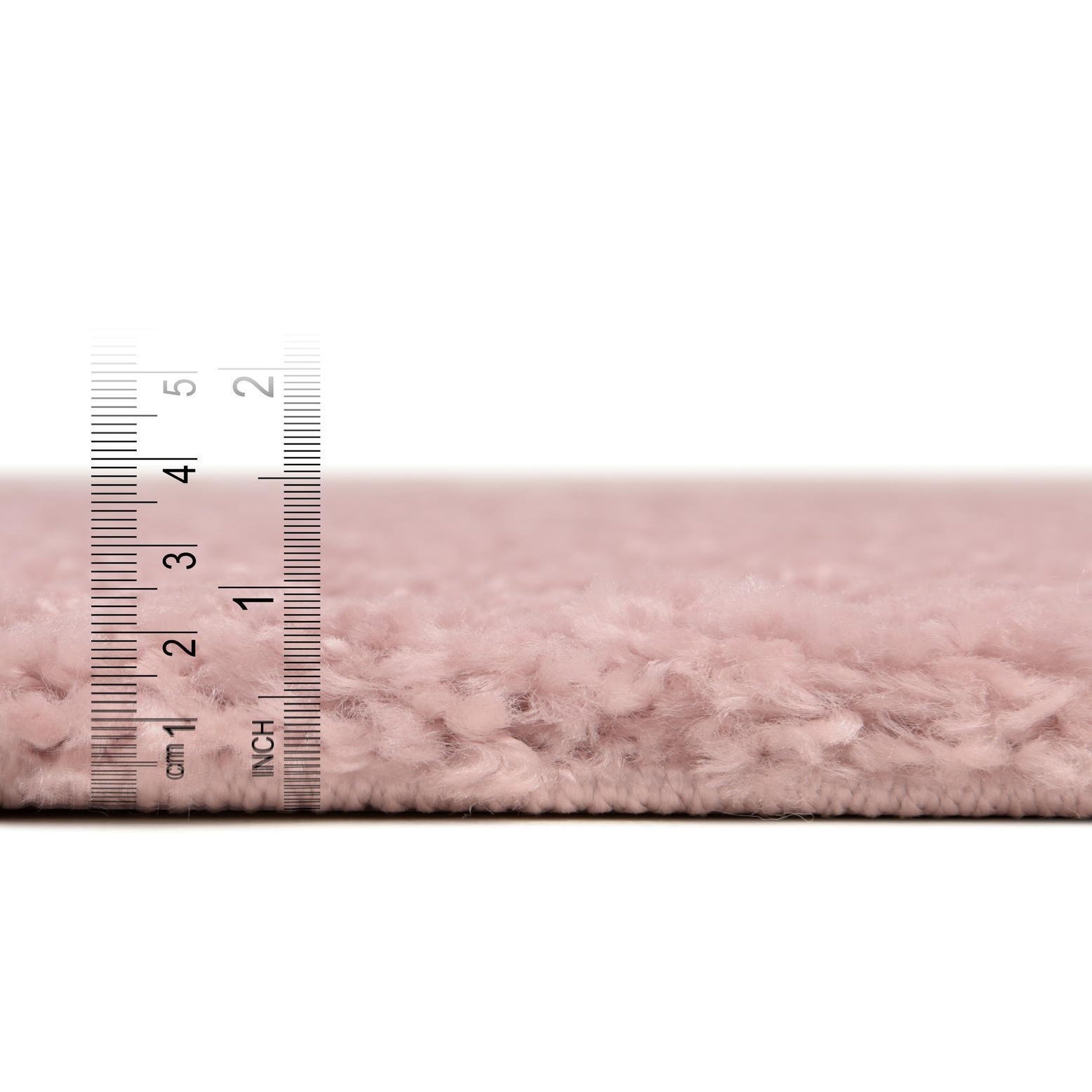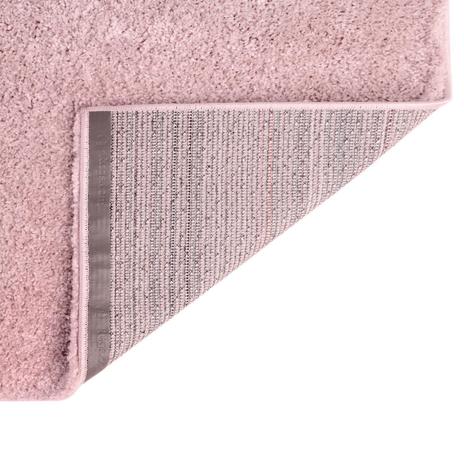A 3x5 rectangular pink shag rug, showcasing its soft, textured pile and solid color, perfect for adding warmth to an indoor space.