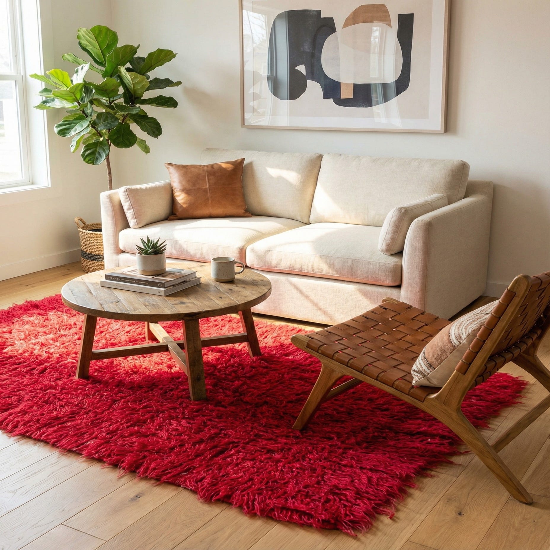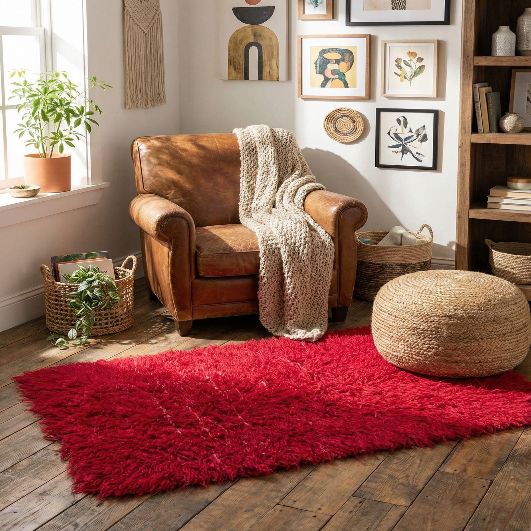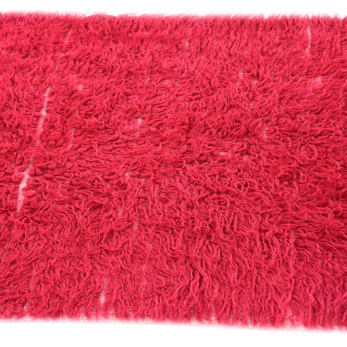 A vibrant 4 ft runner rug in a rich pink hue, featuring a plush shag pile and subtle tribal texture.