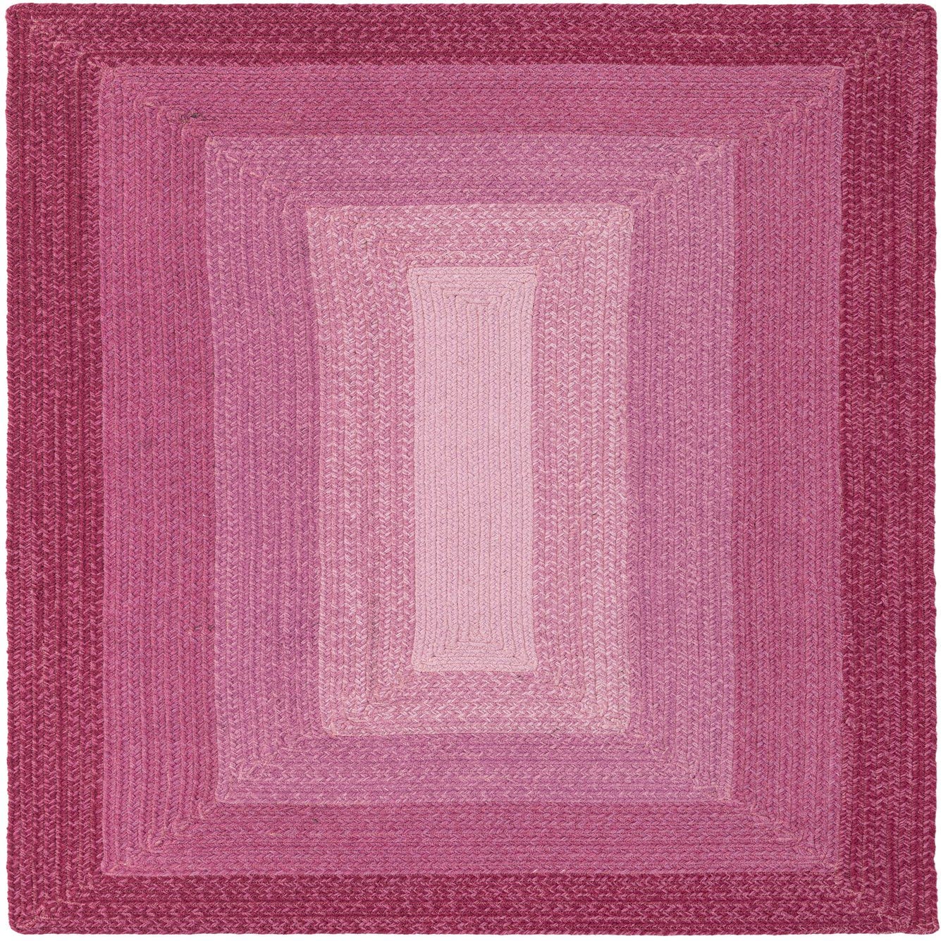 A 4x6 rectangular braided wool rug featuring a gradient of pink shades, from deep fuchsia at the edges to light blush in the center.