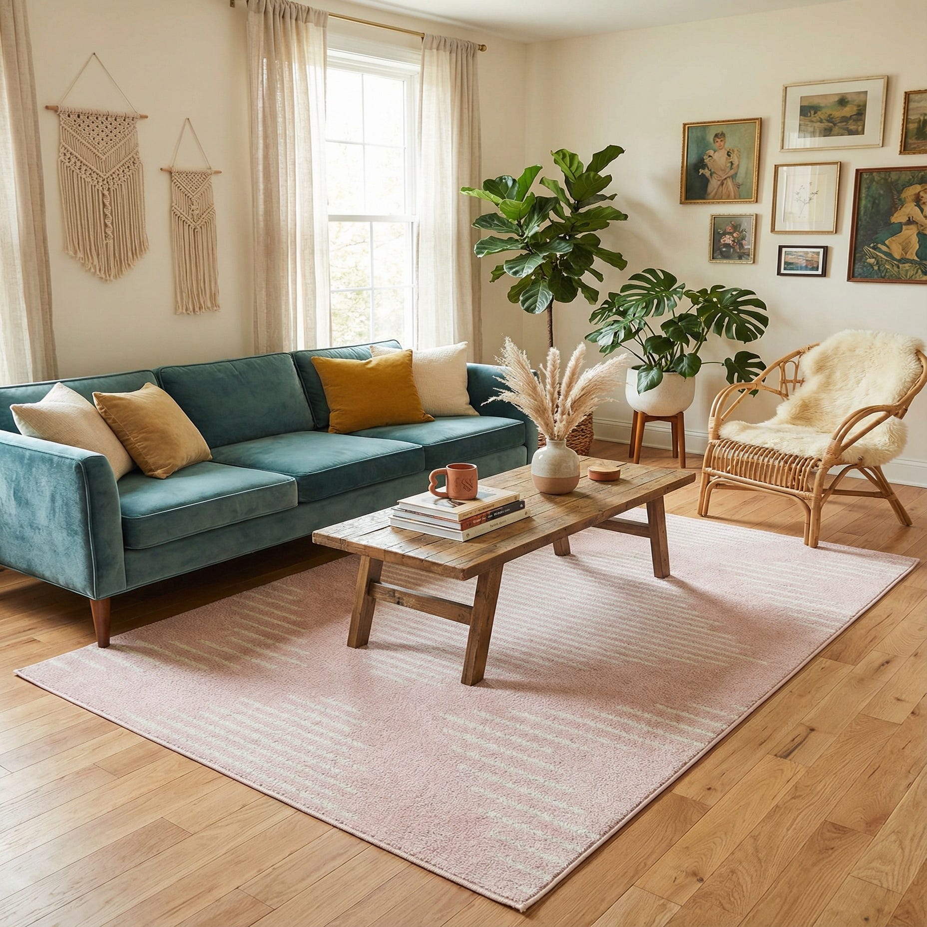 This rug suits contemporary and Scandinavian interiors as well as more feminine or softly modern schemes. Pair it with light oak or white-washed furniture and muted metallic accents for a fresh living room or place it beneath a reading chair to warm a bedroom corner. It also works well in a home office or nursery where a gentle color and understated pattern can anchor the space without overpowering other decor.