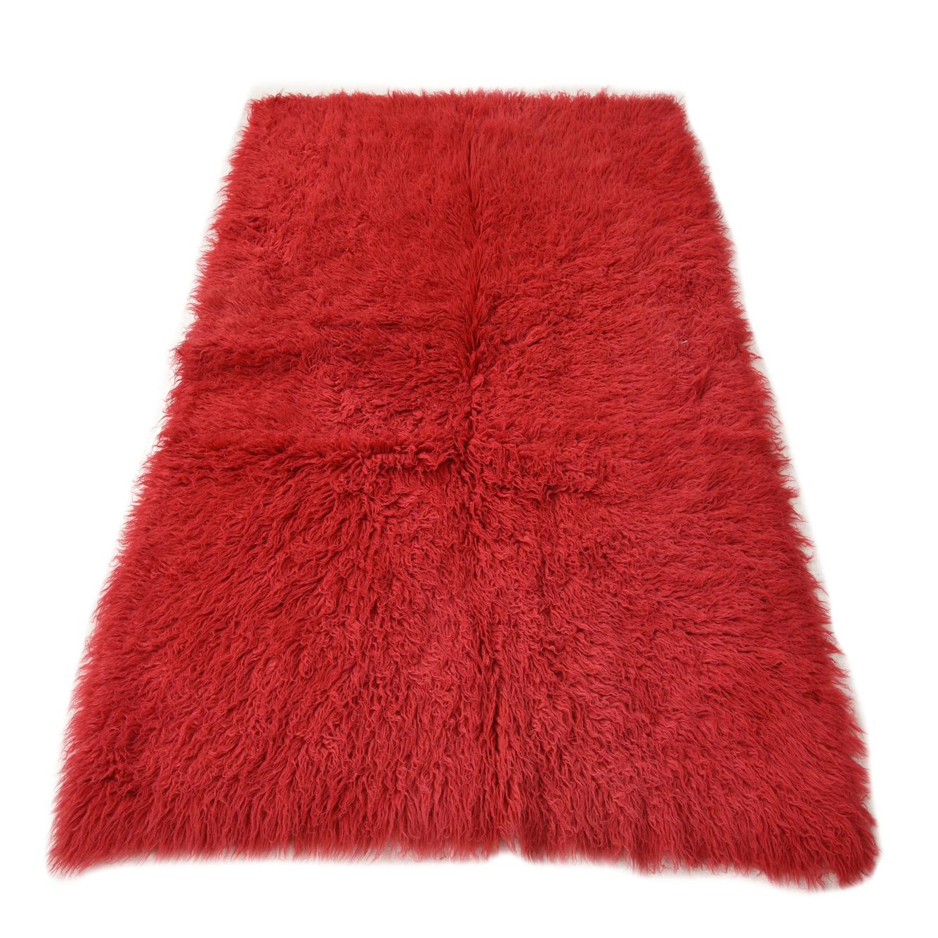 A vibrant 4x6 rectangular pink shag rug with a plush, high pile, perfect for a cozy living room.