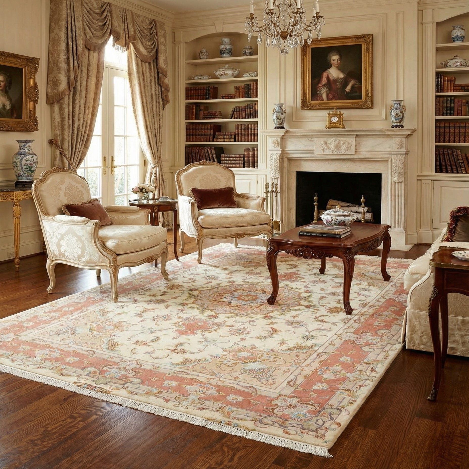 This piece would be a fitting centerpiece in a formal living room, dining area, or study, harmonizing with traditional furnishings and rich wood tones. It could also offer a contrasting element in a more contemporary setting, adding a touch of warmth and complexity to minimalist decor. With its balanced hues, the rug can complement a range of color schemes, from neutral to bold.