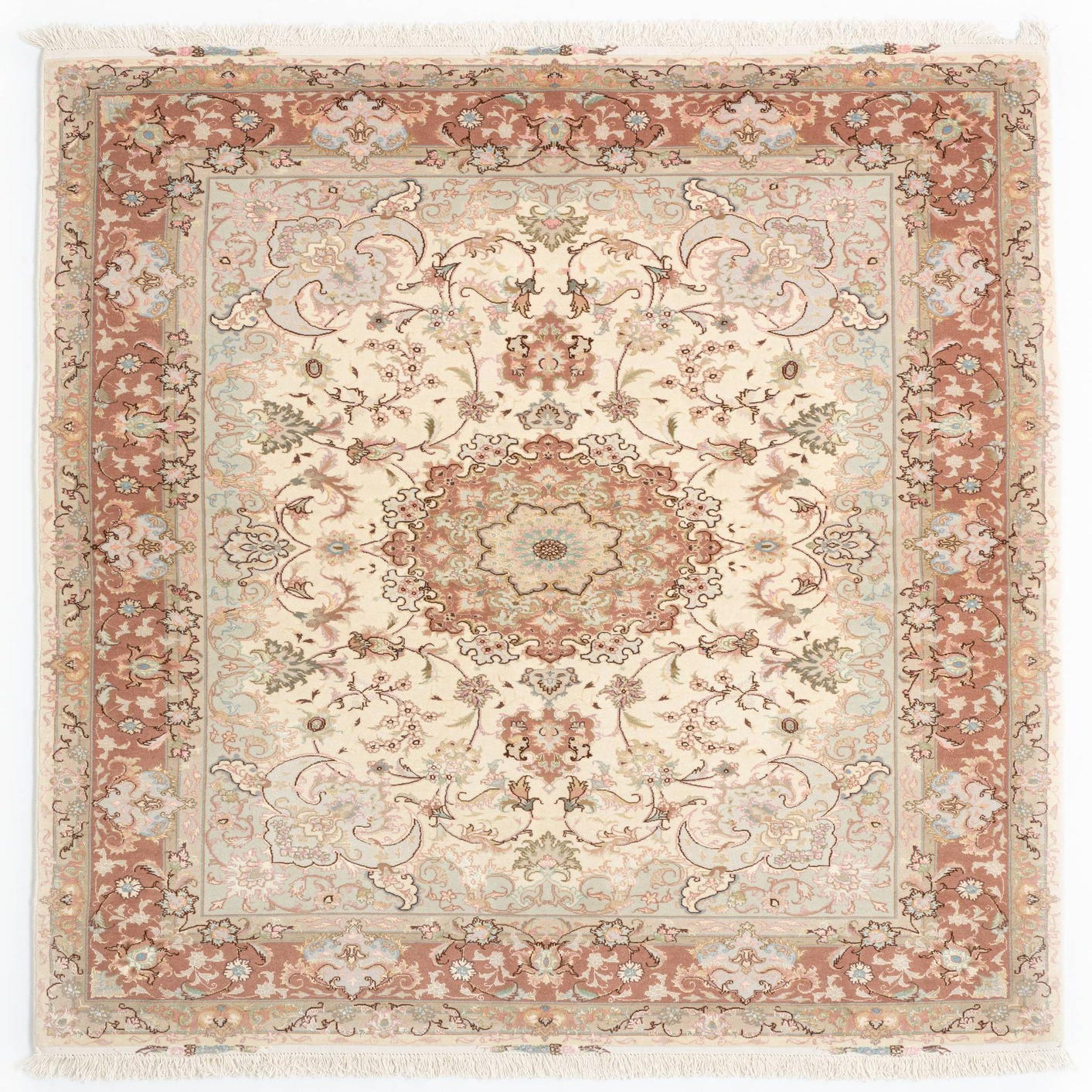 This Tabriz rug would complement classic and traditional decors, adding a sense of luxury to a living room, dining area, or bedroom. Its versatile color scheme can be easily integrated with both neutral and bold interior palettes, while the handcrafted quality ensures it stands as a centerpiece in any space.