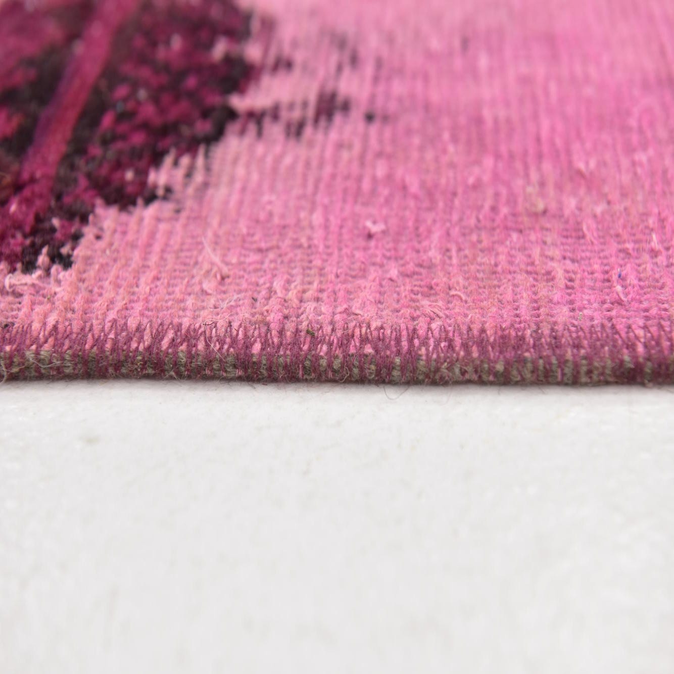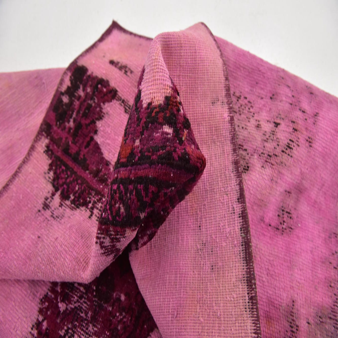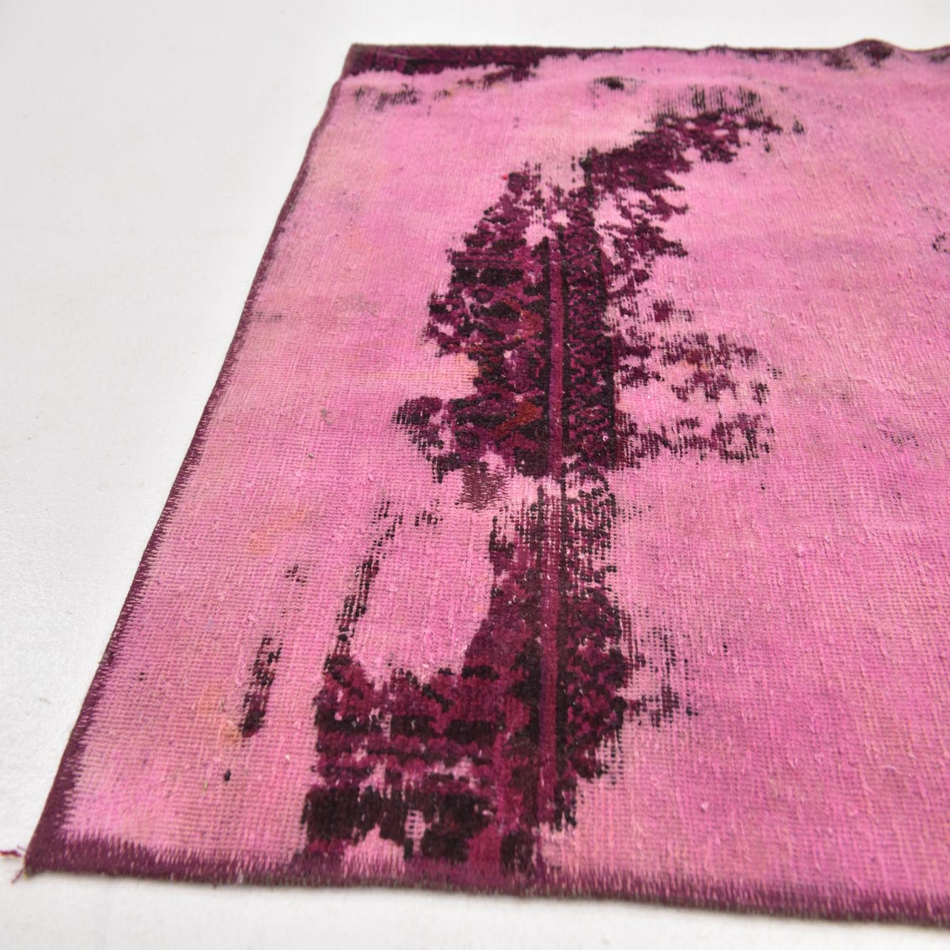 The Ultra Vintage Collection offers a 4x6 hand-knotted rug constructed of 100% wool, presenting a durable and plush foundation for any room. This piece has a distinct aged patina and texture, highlighting its artisanal craftsmanship and rich heritage. The rug exhibits a pink background adorned with deeper tones of burgundy, maroon, and red, creating a palette that is both warm and versatile.