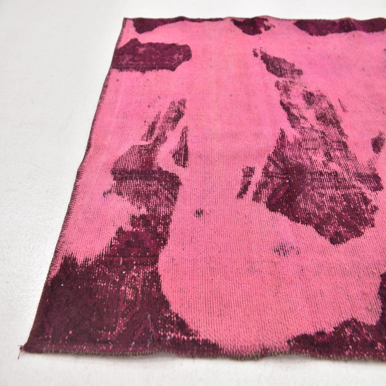 A 4x6 rectangular pink wool rug with a distressed abstract Persian pattern, suitable for a living room.