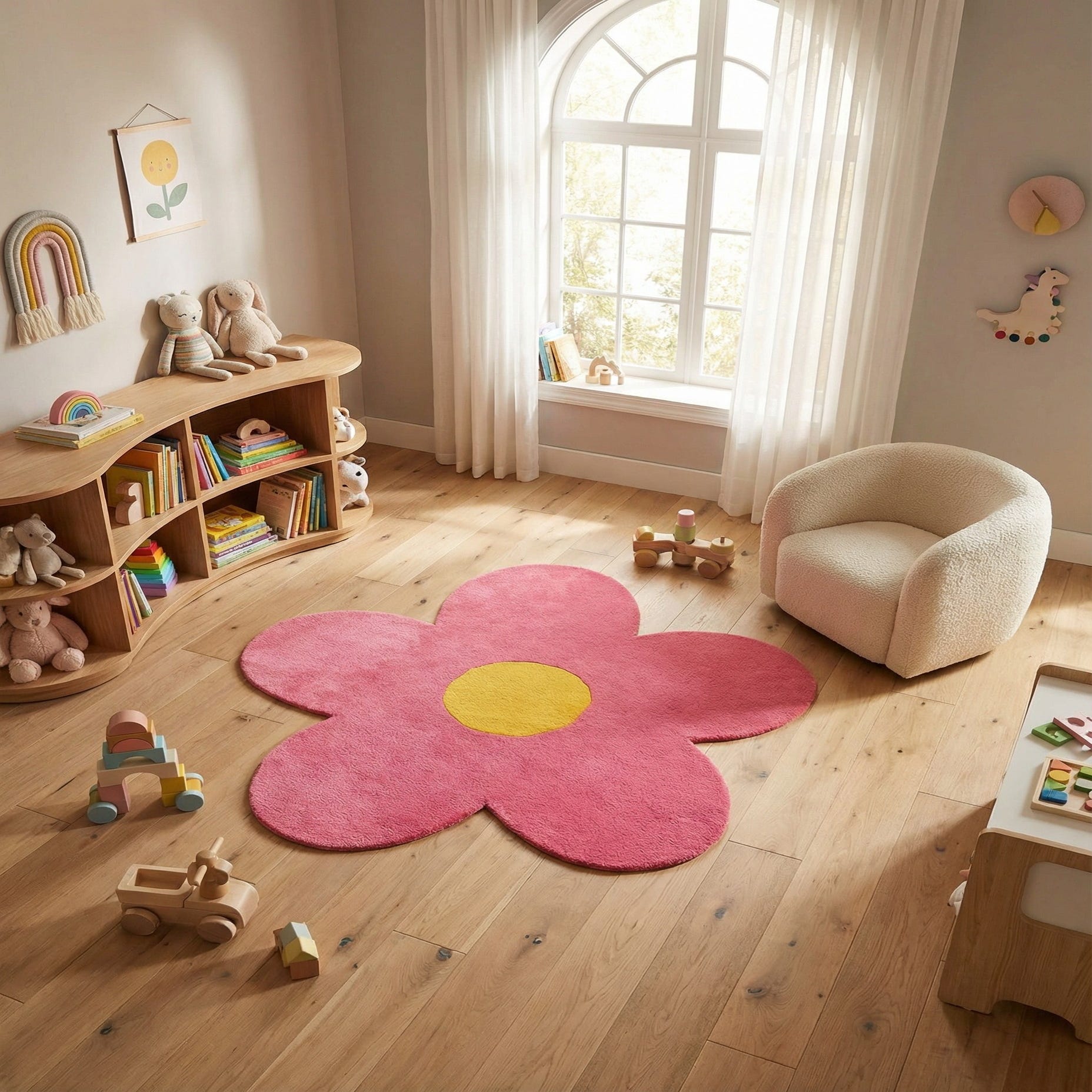 5' 1 x 5' 1 Happy Rugs Funky Flower Wool Round