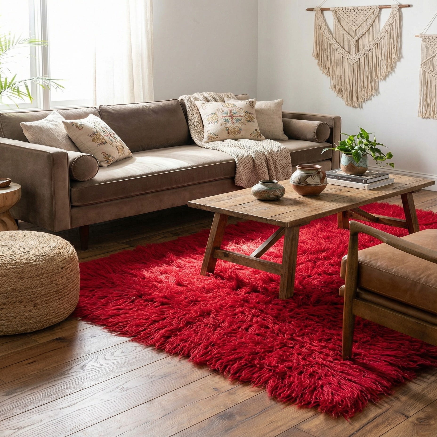 A vibrant pink 5 ft runner rug with a plush, shaggy texture, perfect for adding warmth and color to a hallway.