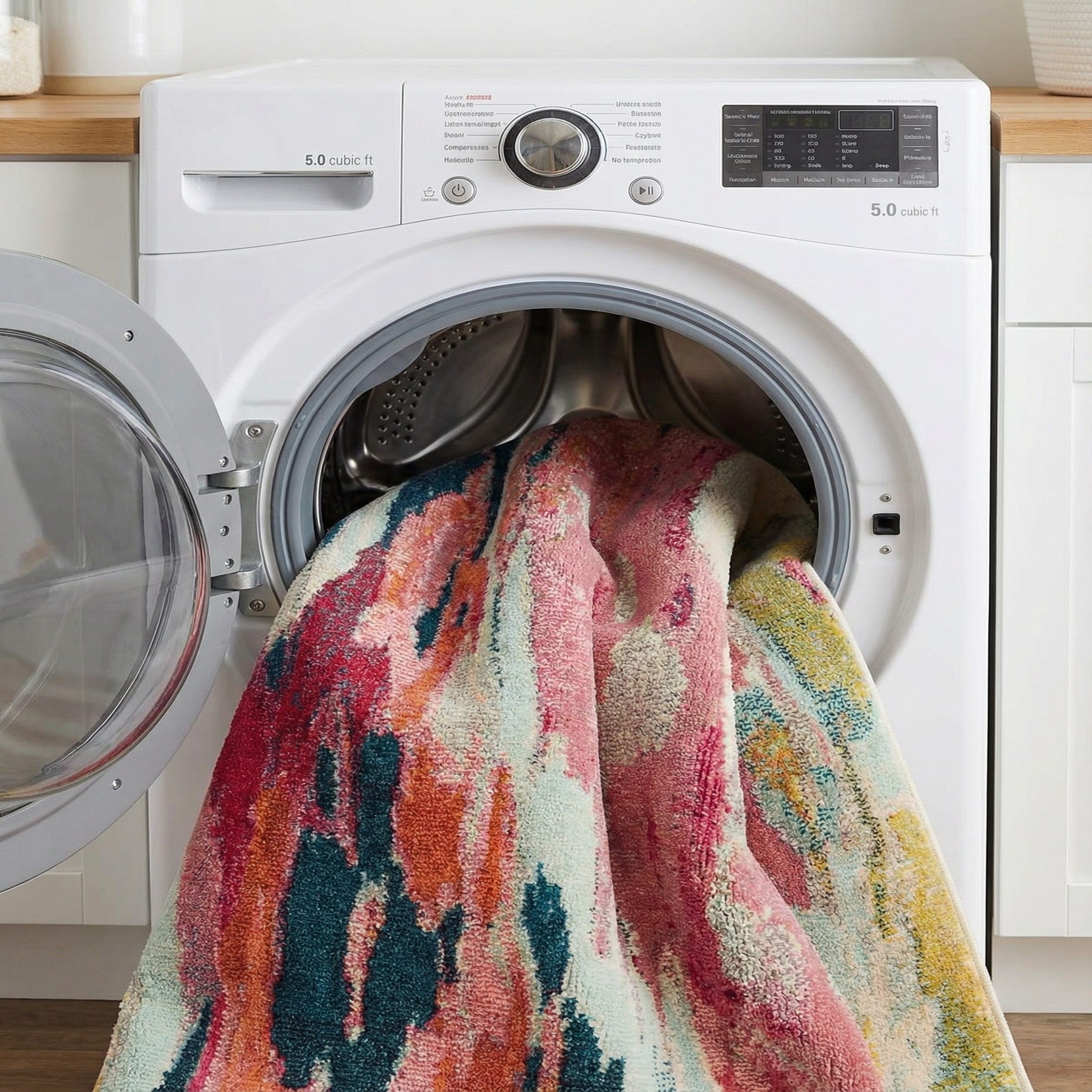 With its contemporary aesthetic and vivid color scheme, this rug is well-suited for spaces seeking a modern touch with an artistic flair. It would complement minimalist interiors, adding a pop of color without overwhelming the space. Alternatively, it's an excellent choice for eclectic rooms where it can harmonize with a mix of patterns and textures. For those looking to create a striking focal point in a room, this rug can anchor the design, balancing both neutral tones and bold furnishings.