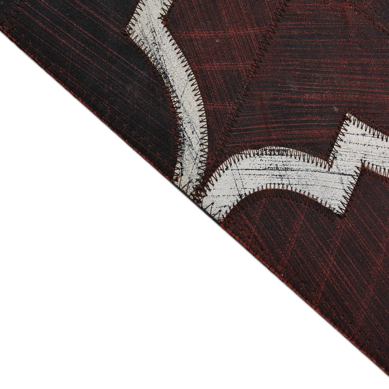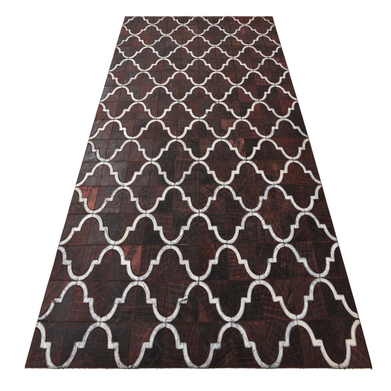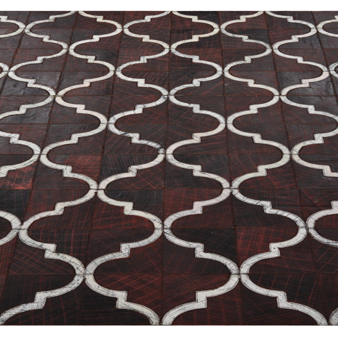A 5x8 rectangular Cowhide rug featuring a modern trellis pattern in shades of pink and white, suitable for a living room.