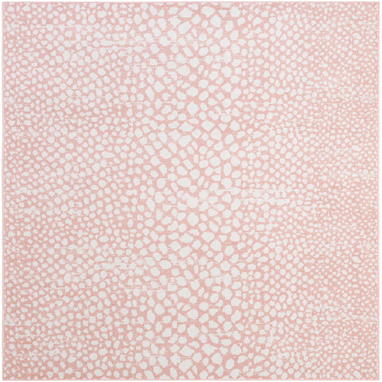 Primary color is Pink. Colors in this rug include: Pink, Ivory.