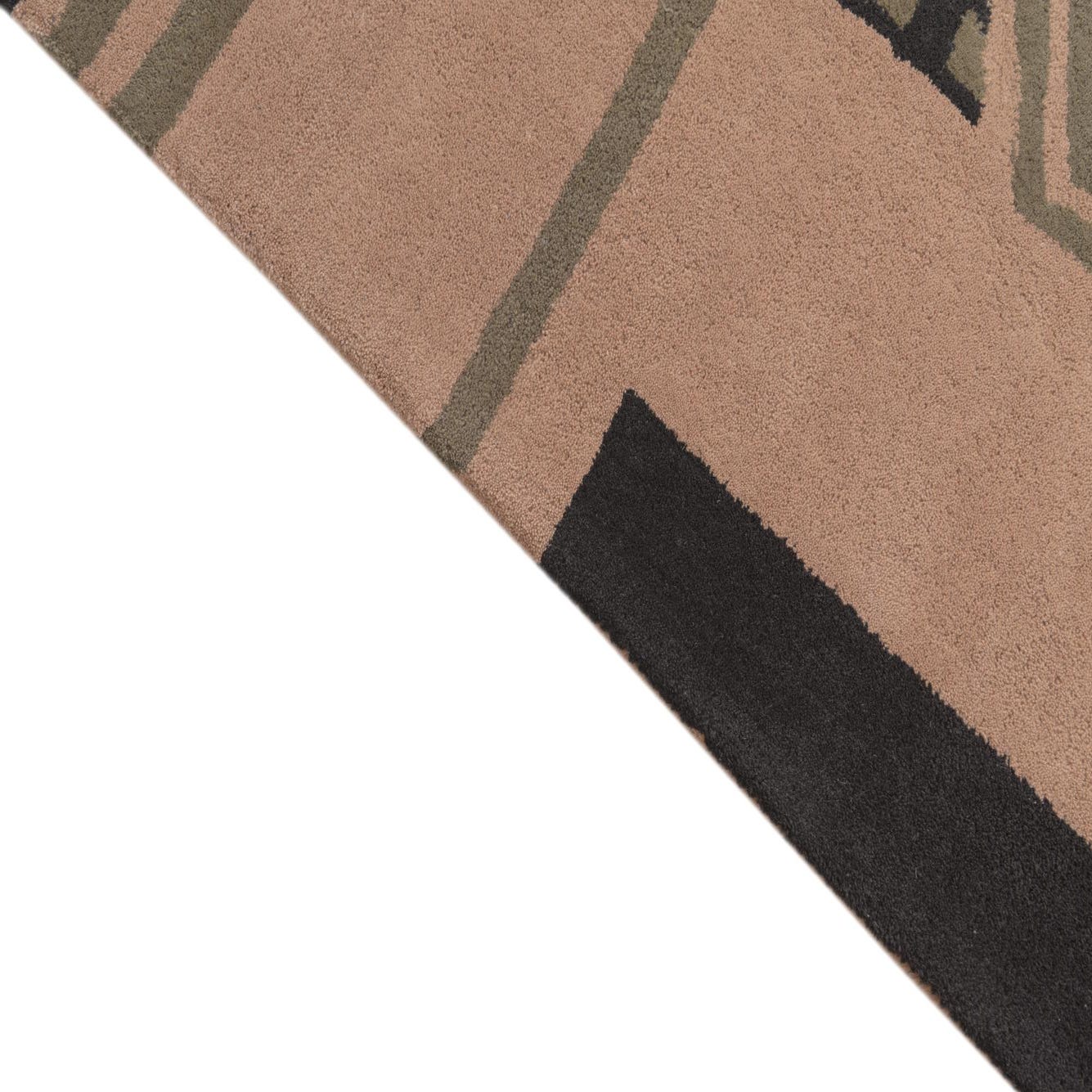 A 5x8 rectangular Luna Collection rug featuring a modern abstract pattern in pinks, black, and olive green.