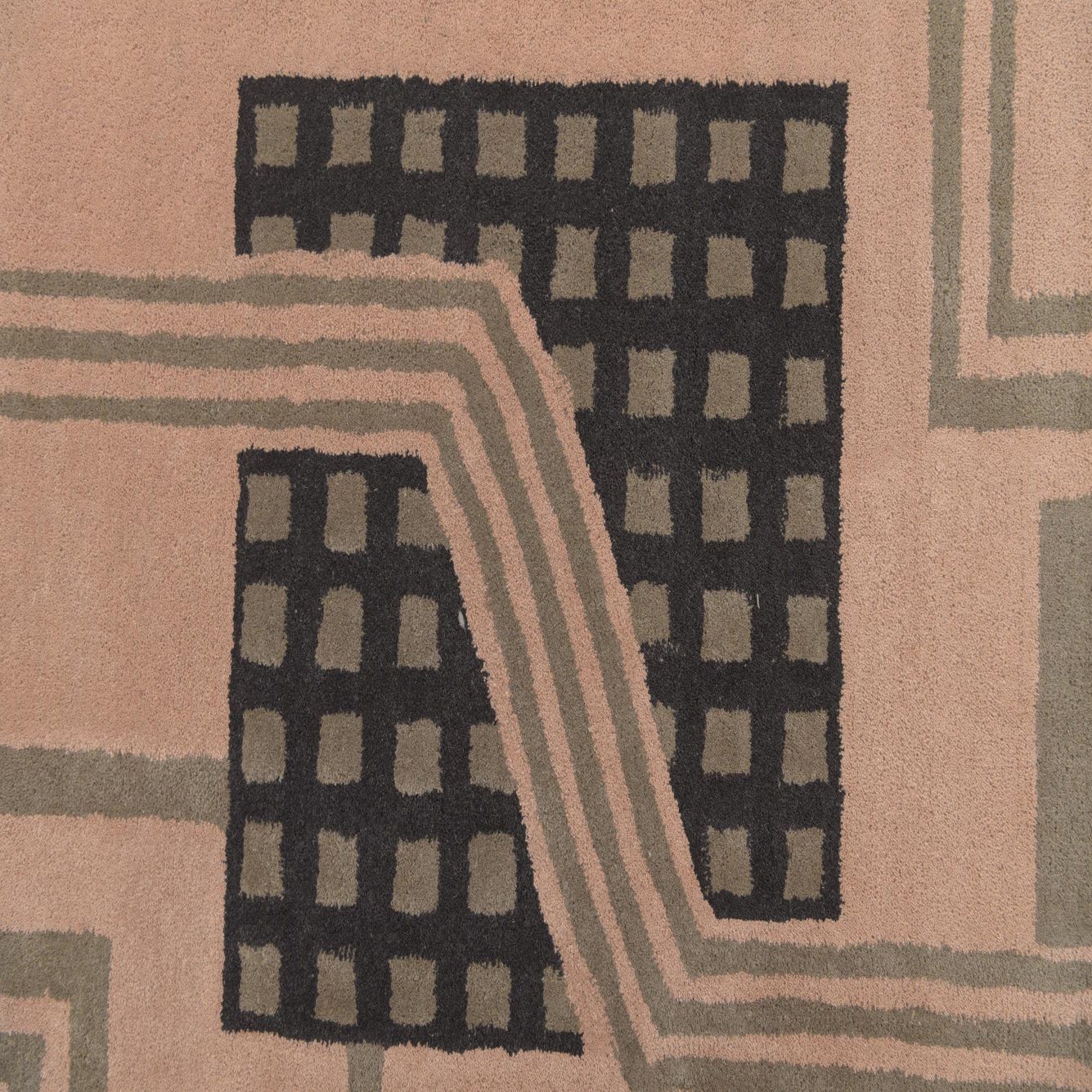 Primary color is Pink. Colors in this rug include: Pink, Black, Green.