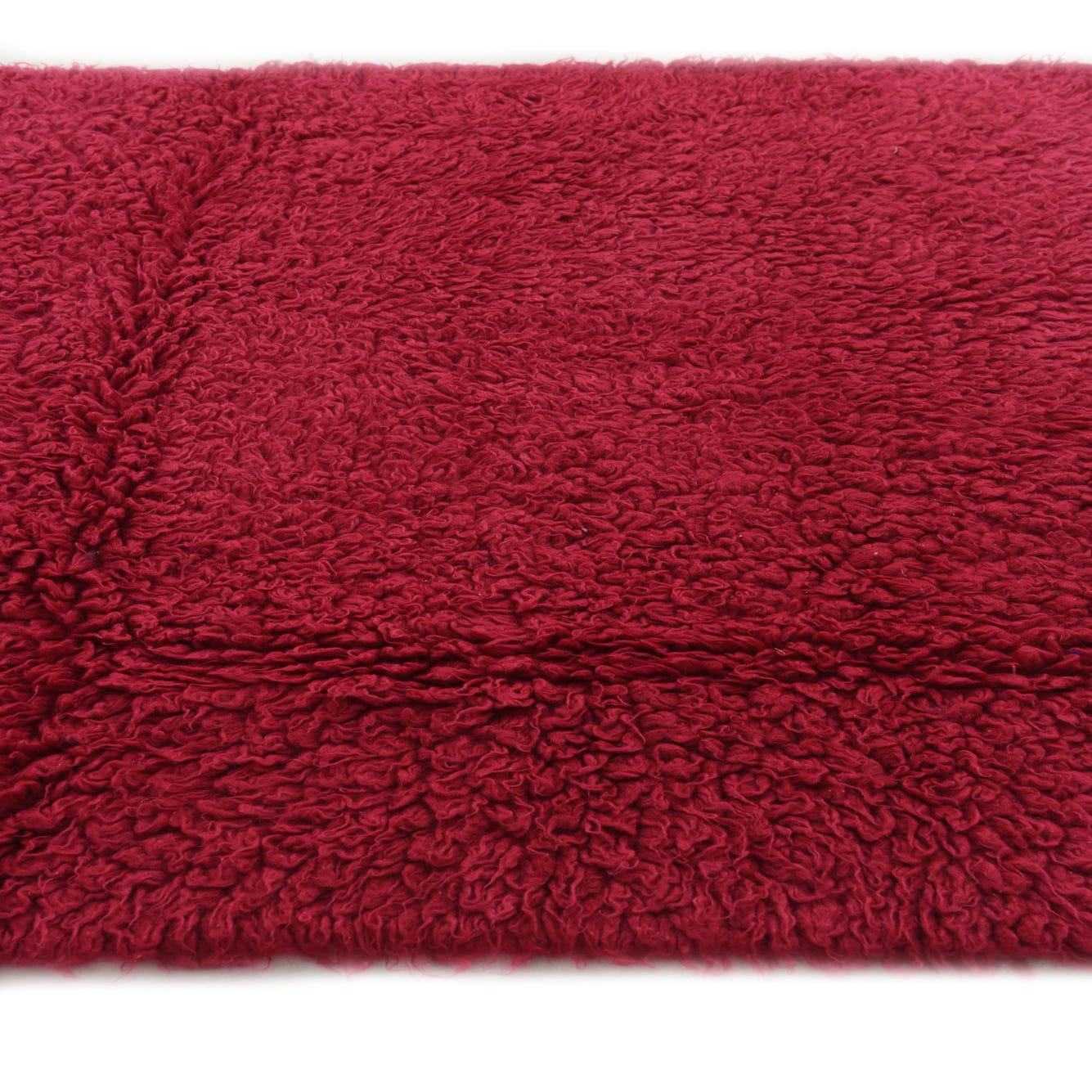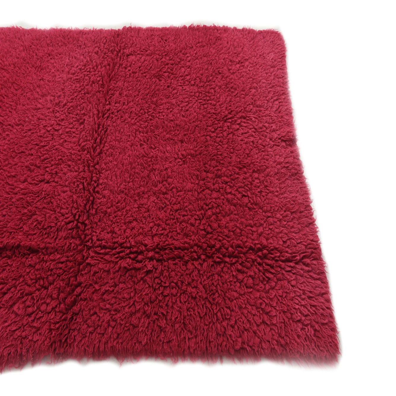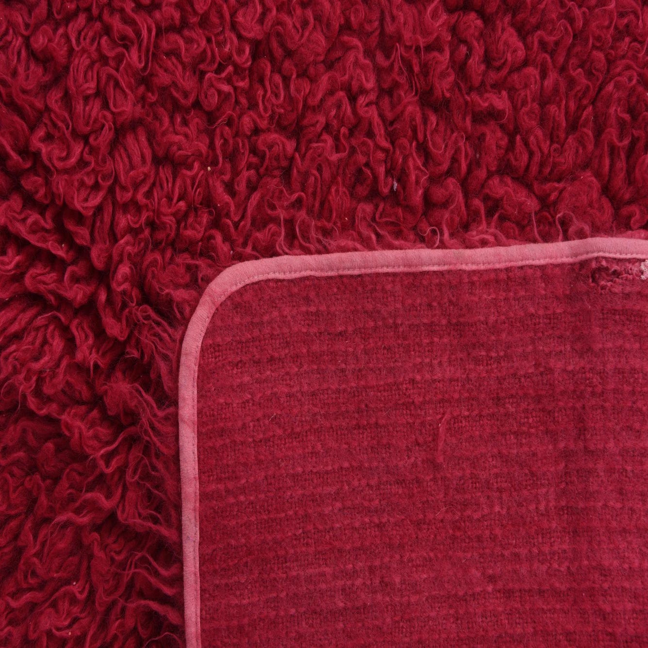 A rectangular 5x8 hot pink shag rug made of wool, featuring a plush, textured pile suitable for a living room or bedroom.