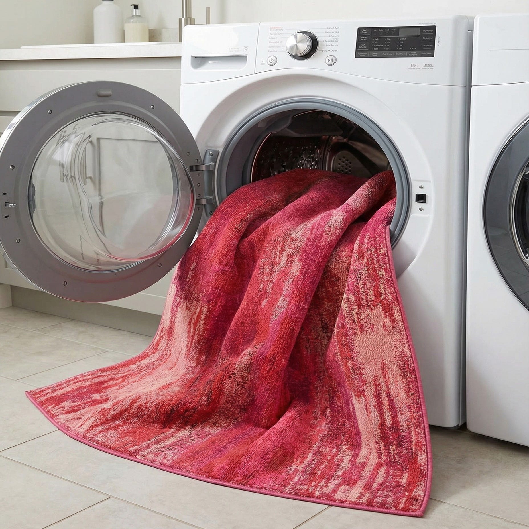 Machine-made from 100% polypropylene, the rug has a low, smooth pile that feels soft underfoot while holding a neat, consistent finish. It works well layered beneath a coffee table in a modern living room, as a bold anchor in a feminine or eclectic bedroom, or to add color and texture to a home office or entryway. Pair it with neutral furniture and metallic accents for contrast, or with velvet and warm wood tones for a rich, layered interior.