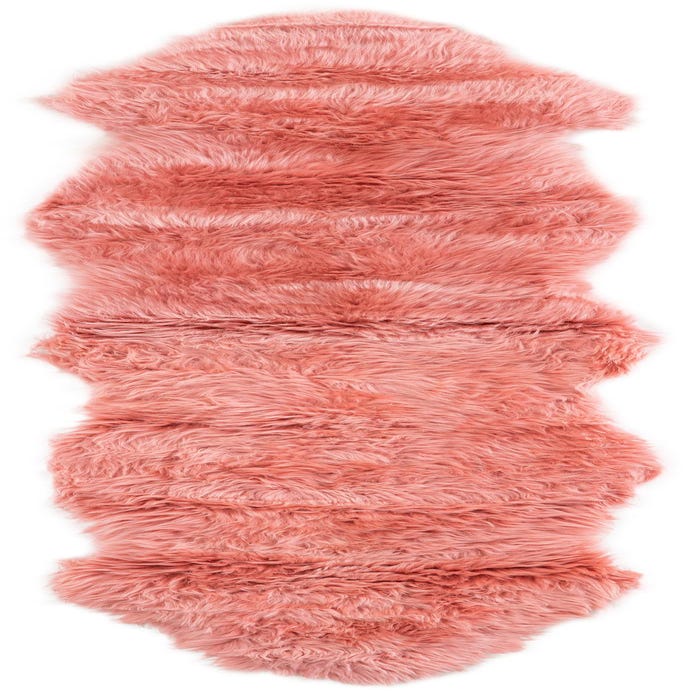 A long, freeform 1'10" x 6'0" Natural Sheepskin rug in a soft pink hue, showcasing its plush, textured lambskin pile.