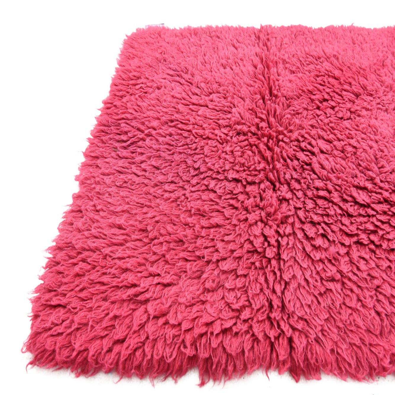 A vibrant pink 6 ft runner rug with a plush, shaggy texture, perfect for a hallway.