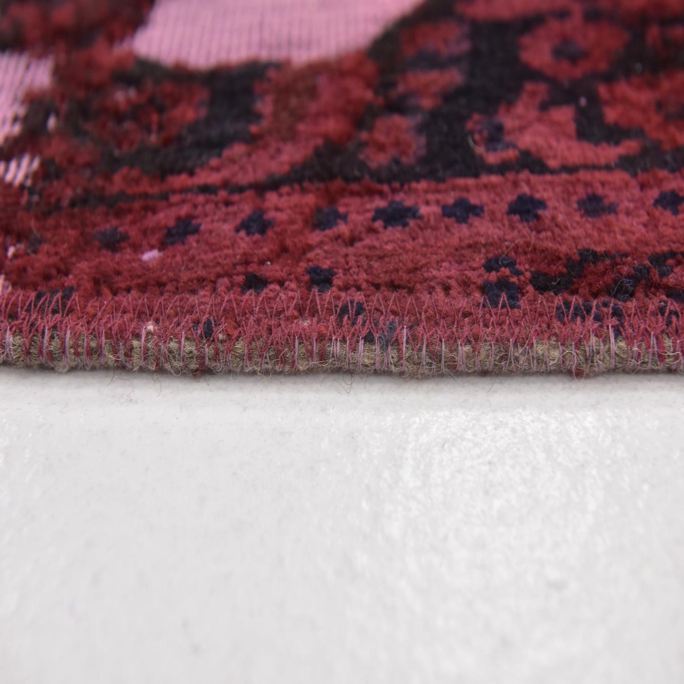 A 5' 2 x 6' 0 square pink and maroon rug with an abstract, distressed vintage Persian pattern.