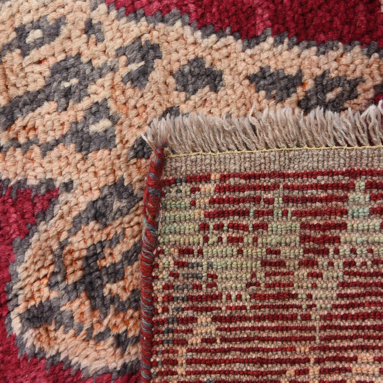 The rug's intricate design includes repeating motifs that have a traditional aesthetic, lending an air of authenticity and timelessness. Its fringe detail adds an extra element of style and finish, harmonizing beautifully with the overall design.