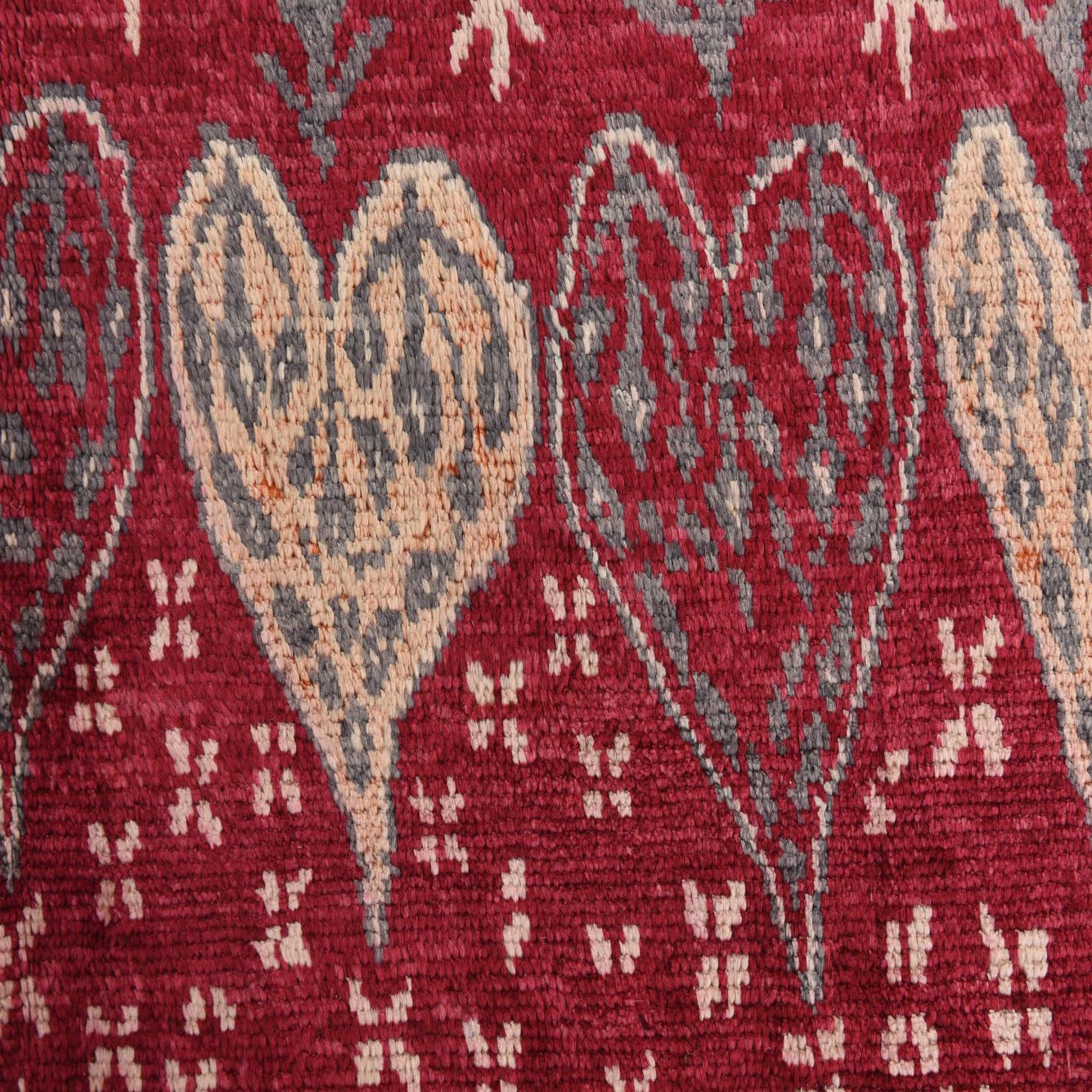 Given its size and visual impact, this rug is well suited for the central areas of a home such as the living room, dining area, or a spacious bedroom. It complements interiors that carry rustic, bohemian, or traditional decor elements. The rug's vibrant pink shade pairs well with neutral tones and natural materials, grounding spaces with a touch of elegance and cultural flair.