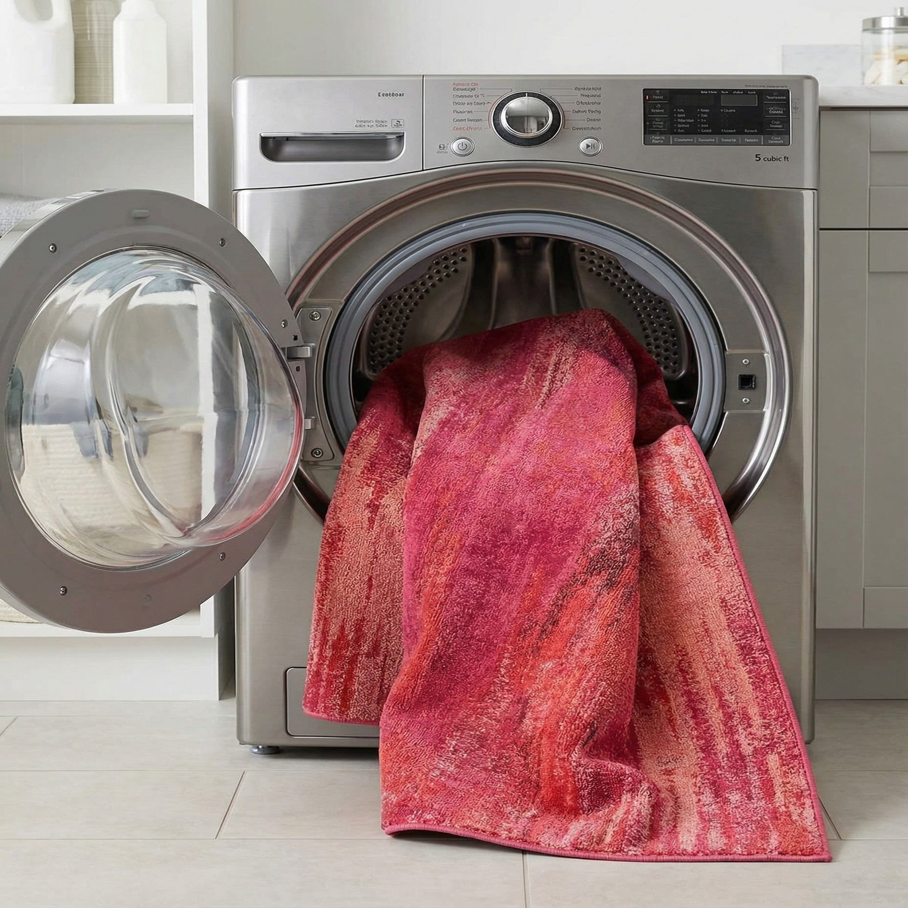 This piece works well as a color anchor in contemporary and eclectic spaces: place it beneath a neutral sofa to introduce warmth and personality, set it under a dining table to energize a modern dining area, or use it to brighten a bedroom with coordinated pillows and throws in burgundy and puce tones. It also layers nicely over natural-fiber rugs to soften a minimalist scheme or pairs with warm wood furniture and matte metal accents for a balanced, pulled-together look.