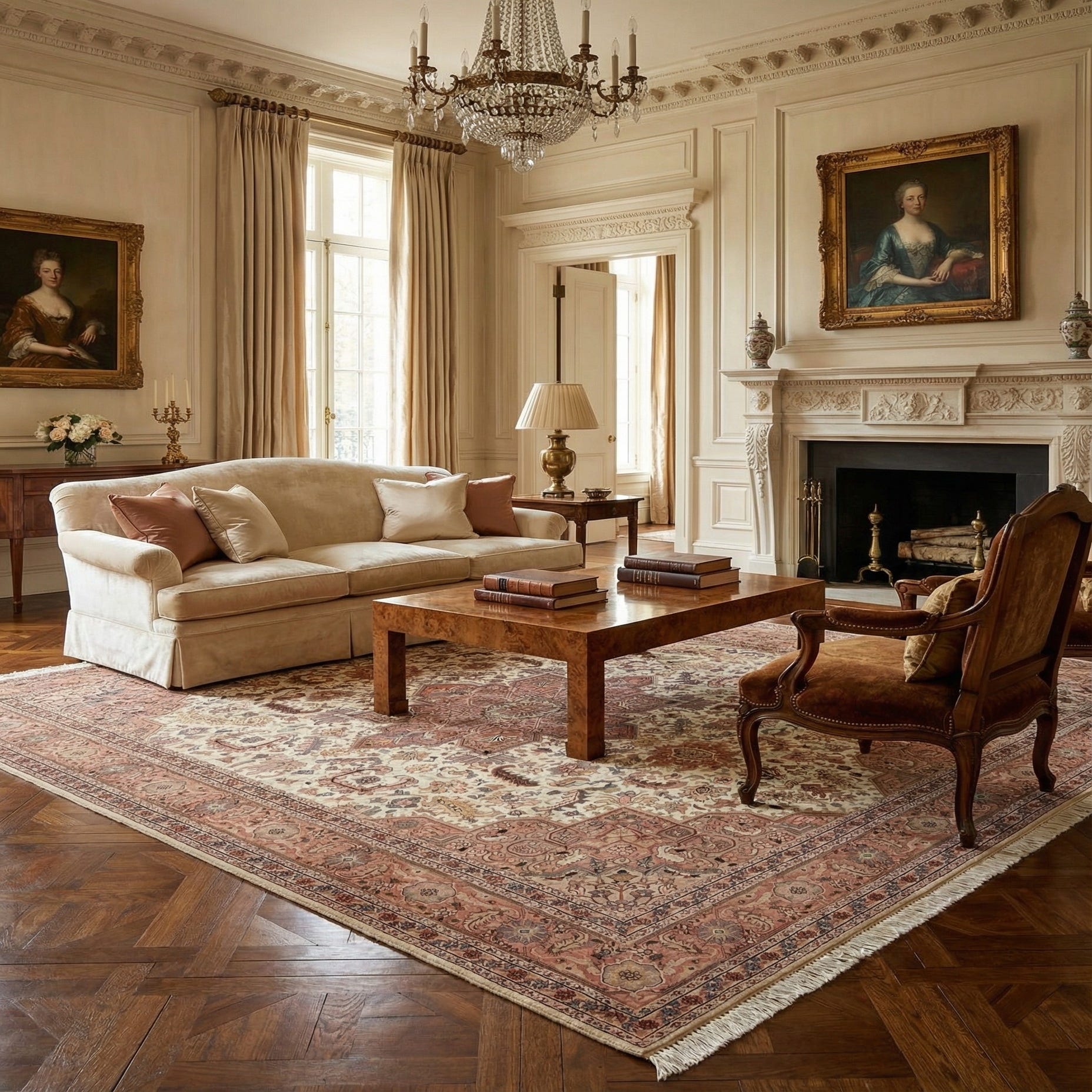 This rug is ideally suited for interiors that seek to balance classic elegance with a touch of warmth. Its intricate pattern pairs well with traditional furnishings and can serve as a focal point in living rooms, dining areas, or bedrooms. The refined color scheme can complement a range of palettes from neutral to bolder hues, allowing for versatile placement within various decor styles.
