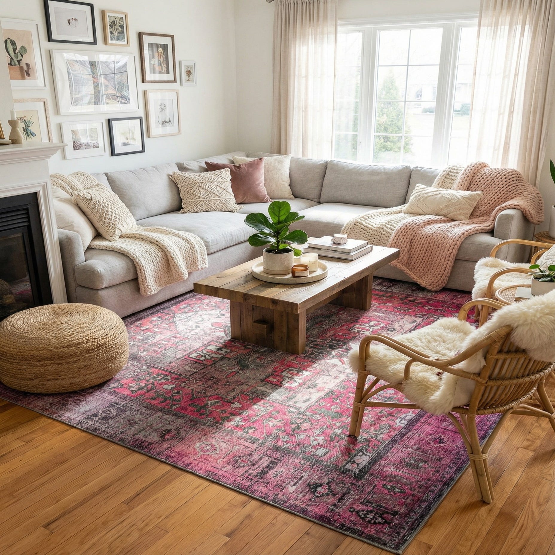 Machine-woven from 100% polyester, this rug exhibits a plush texture that is both inviting and durable. The flatweave construction ensures a low-profile surface that fits seamlessly within a variety of living spaces. Not only is this rug stain-resistant, making it an ideal choice for high-traffic areas or dining spaces, but it is also pet-friendly and shed-free, catering to a clean and low-maintenance lifestyle.