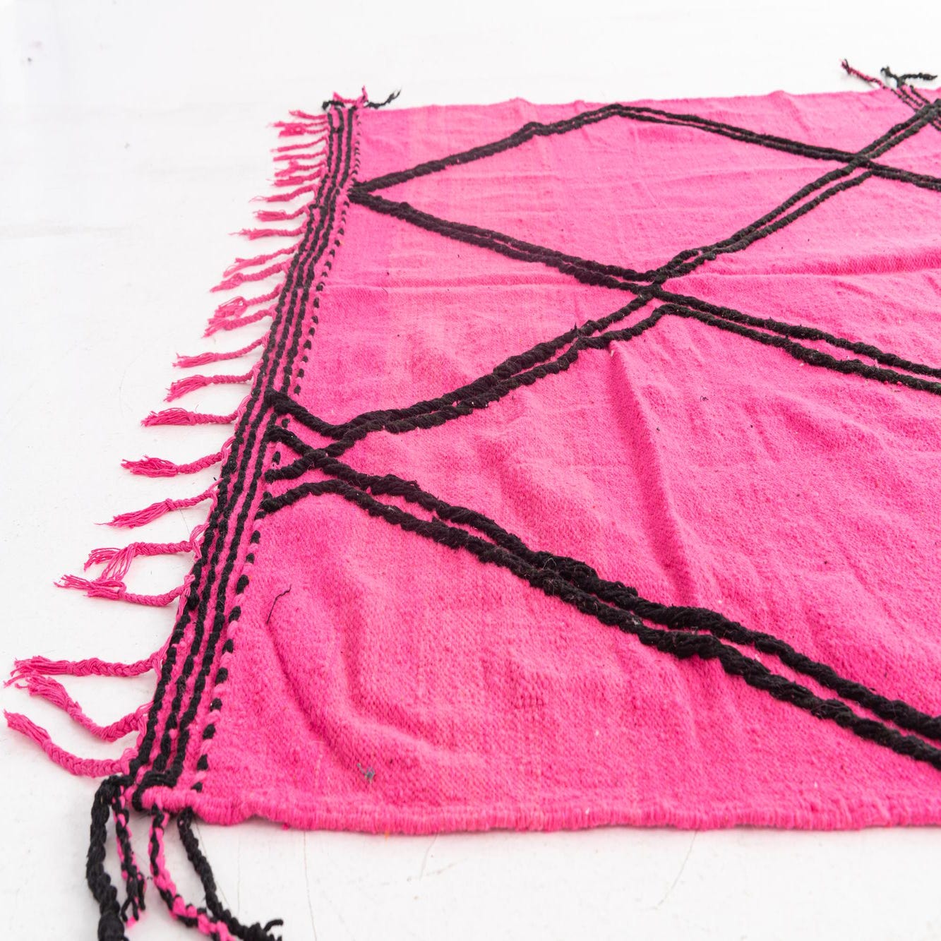 Primary color is Pink. Colors in this rug include: Pink, Black.