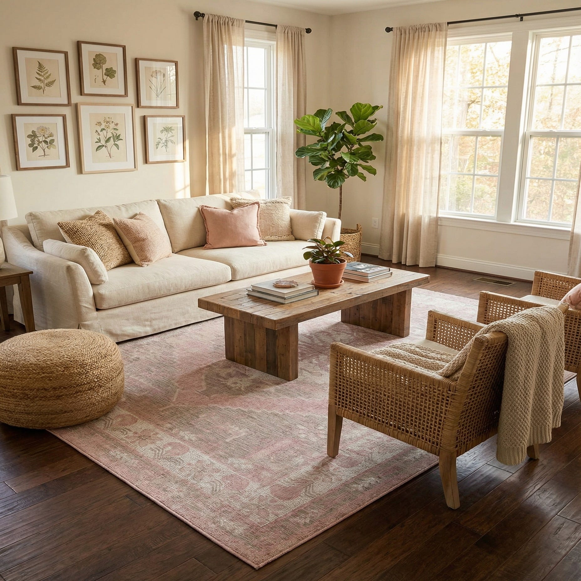 Primary color is Pink. Colors in this rug include: Pink, Ivory, Gray.