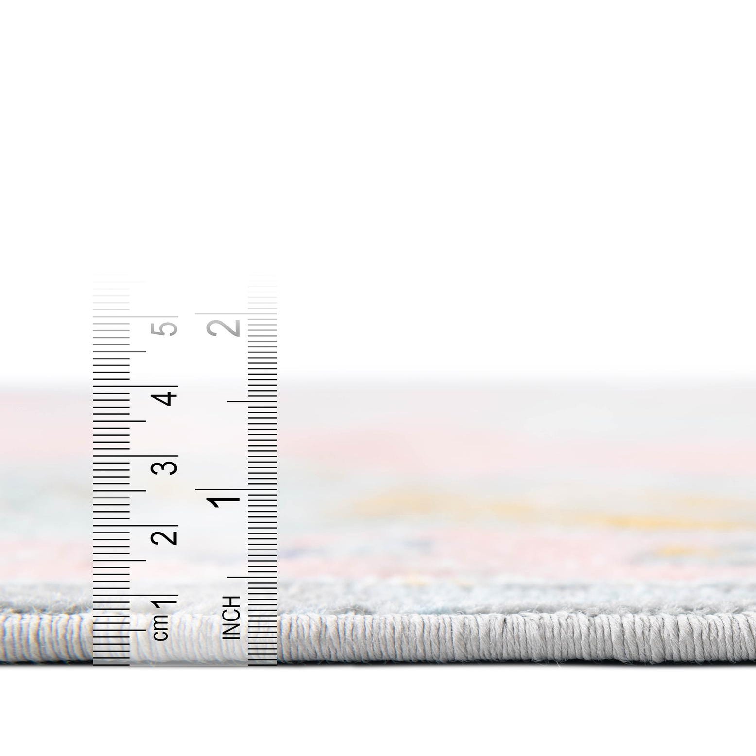 The Whitney Collection presents an 8 Ft Octagon rug crafted from 100% Polypropylene, designed for durability and ease of maintenance. This piece displays a pink background harmoniously integrated with a pattern featuring hues of blue, gold, gray, light blue, and light green, creating a soft yet defined tableau that is both contemporary and reminiscent of traditional motifs.