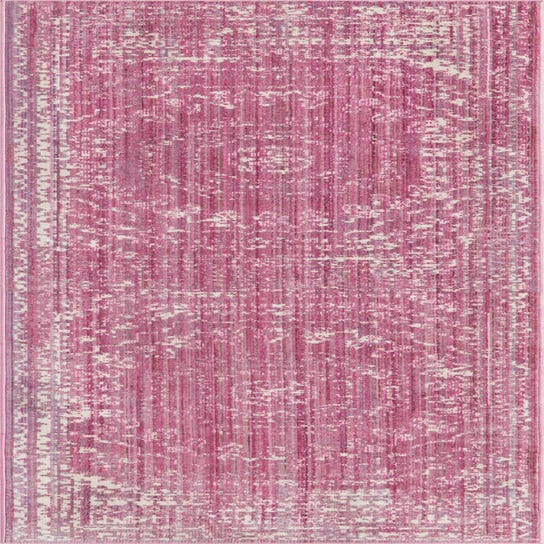 Primary color is Pink. Colors in this rug include: Pink, Ivory, Gray.