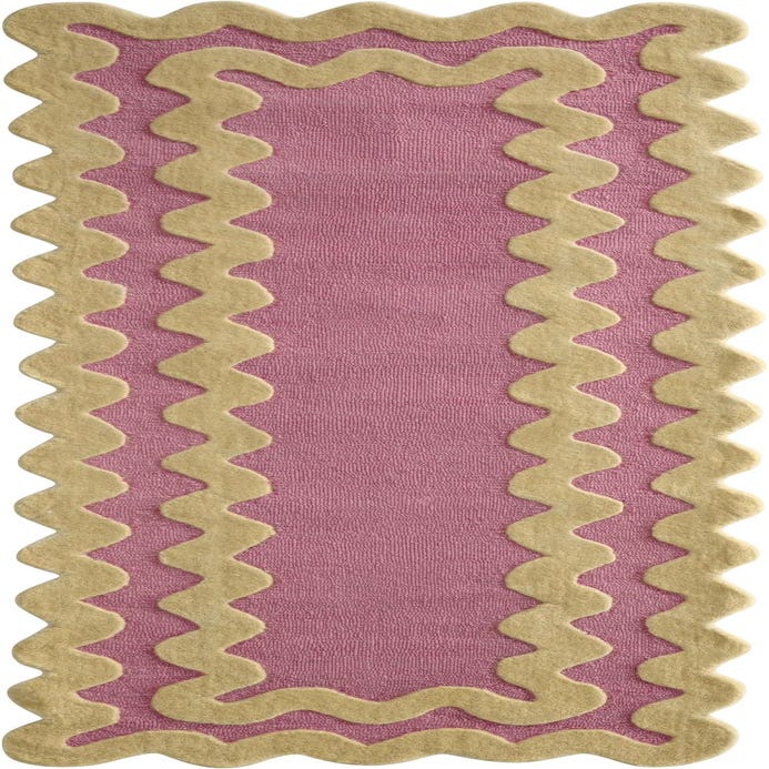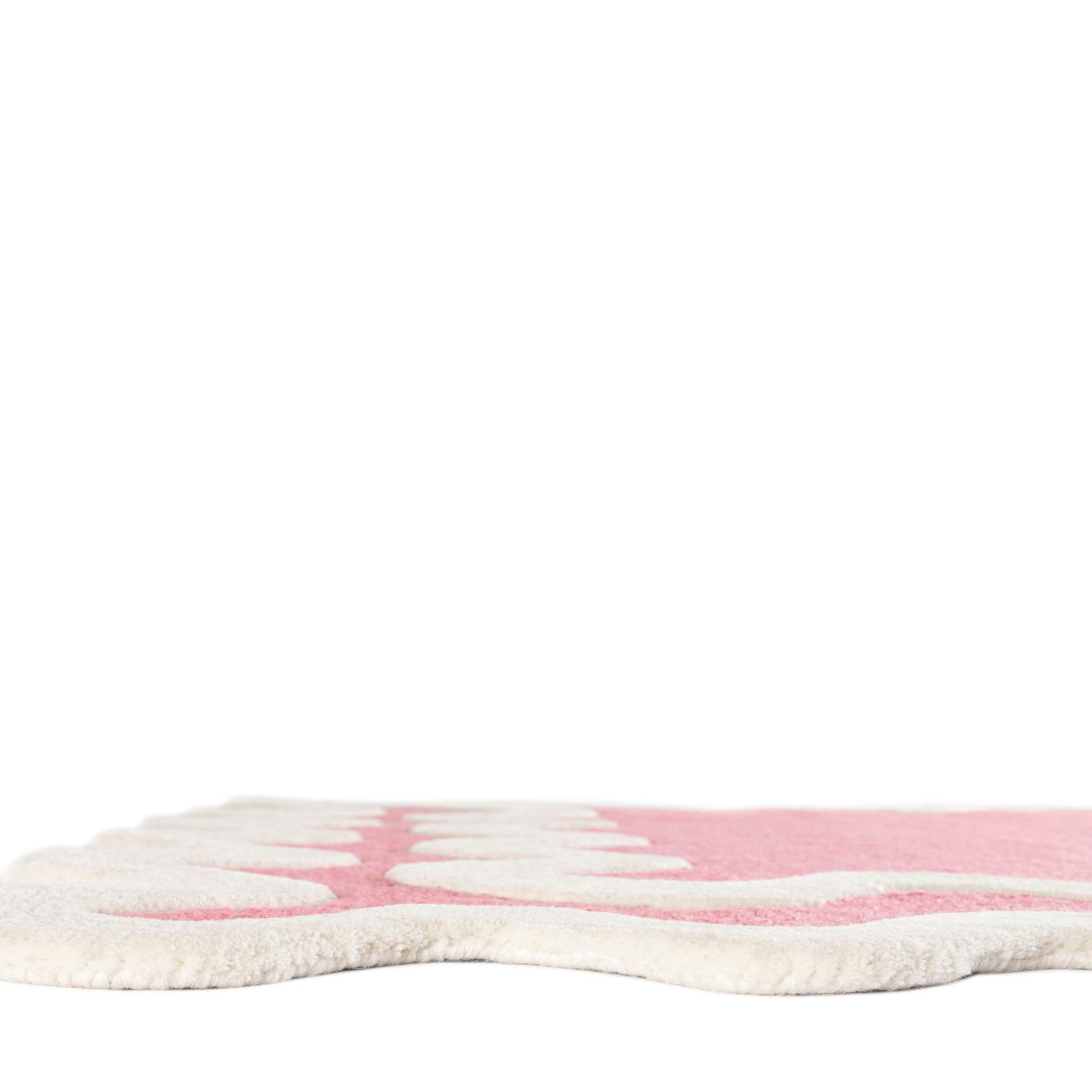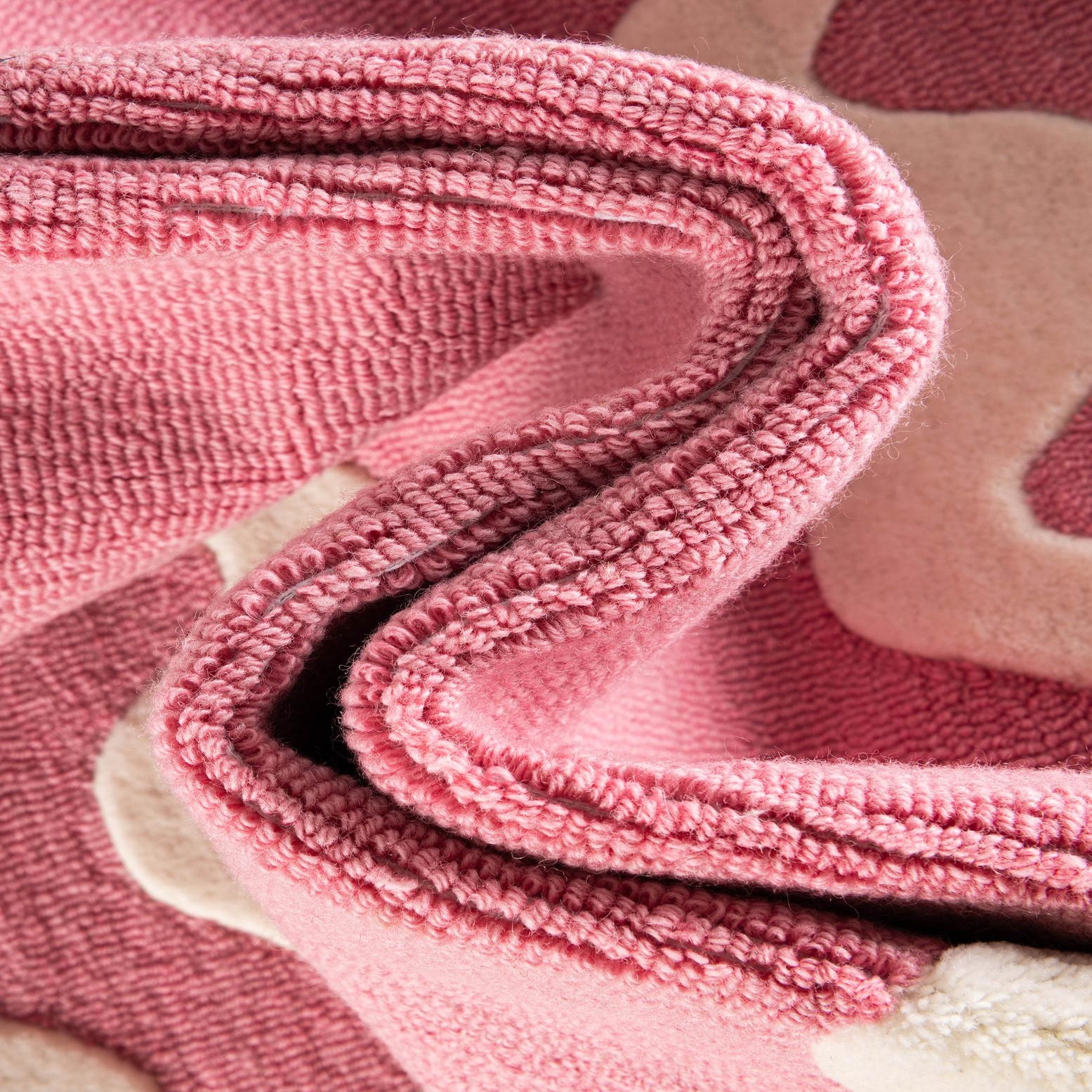 Primary color is Pink. Colors in this rug include: Pink, Ivory.