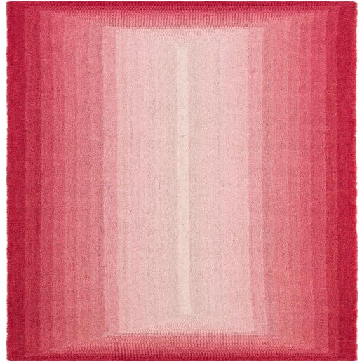 A long 8 ft runner rug with an ombre design, transitioning from deep fuchsia pink at the edges to a pale blush pink in the center.