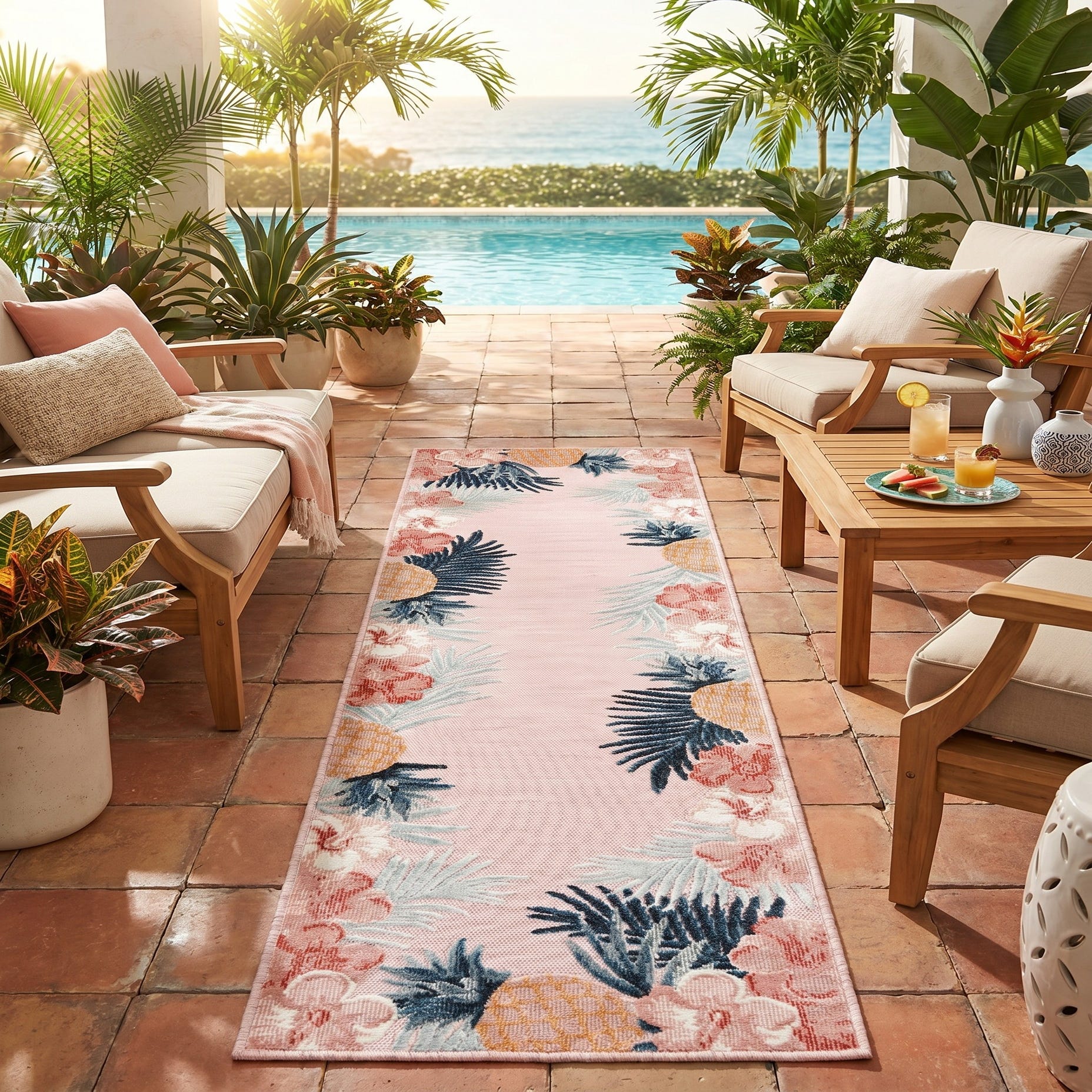 2' 2 x 8' Easy-Clean Botanical Indoor / Outdoor Runner Rug