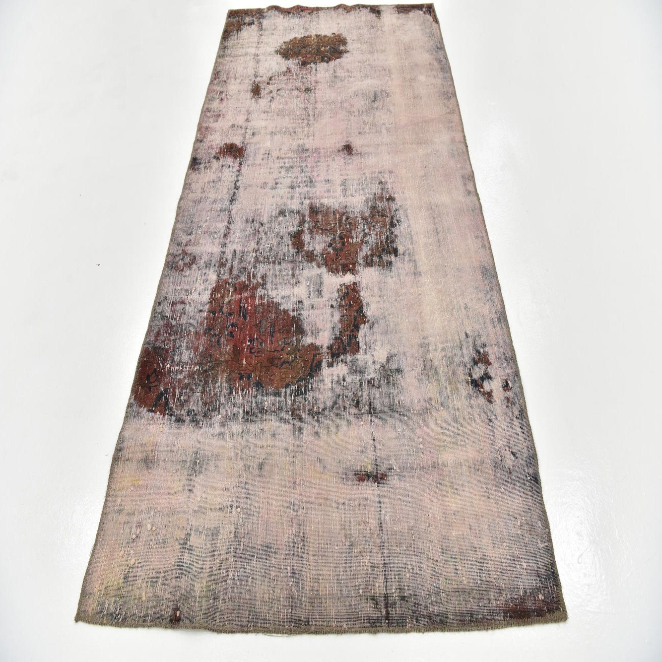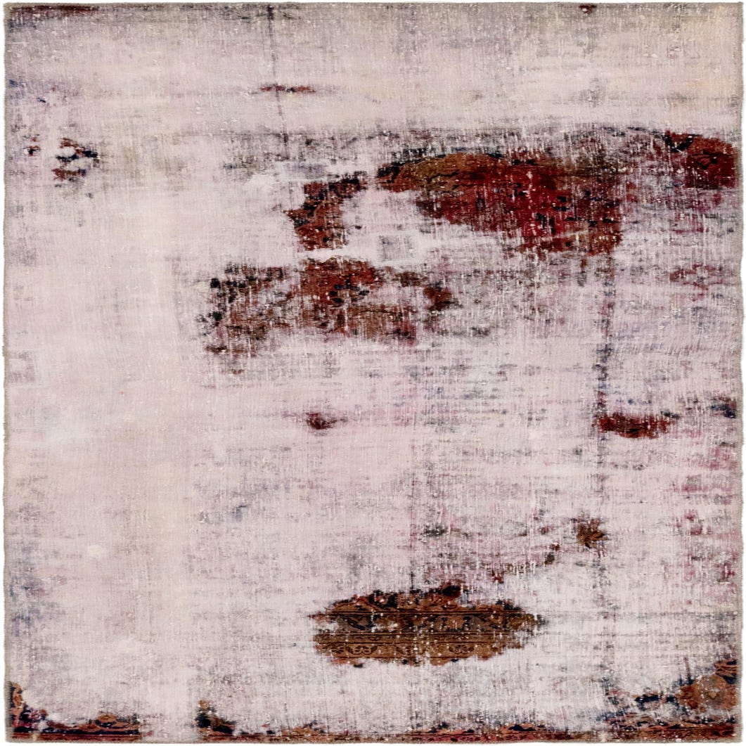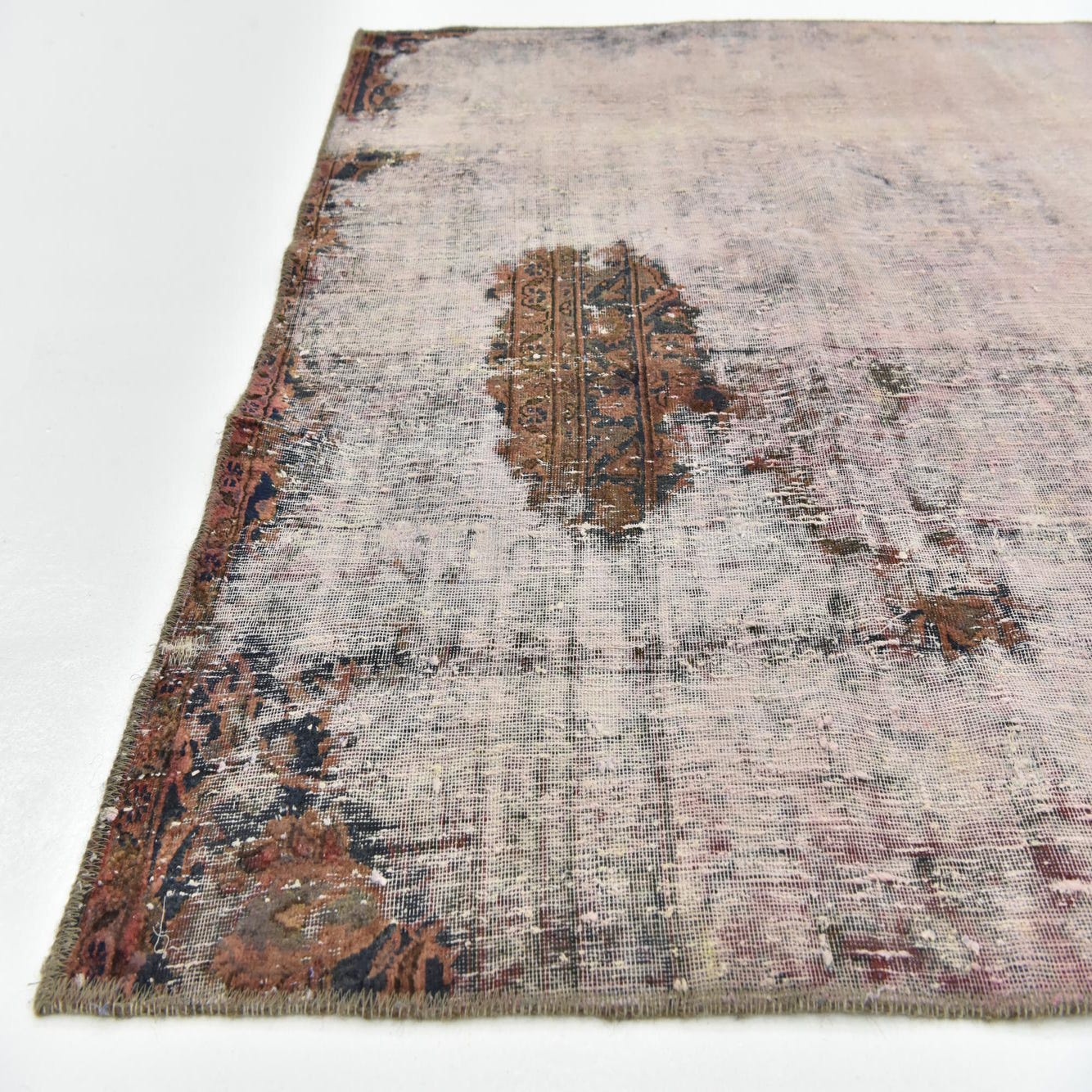 This Persian Ultra Vintage rug is an antique Persian Rug that has been washed, over-dyed, and then shaved down to a low pile. Look at the detail pictures to fully appreciate the uniqueness of this piece.