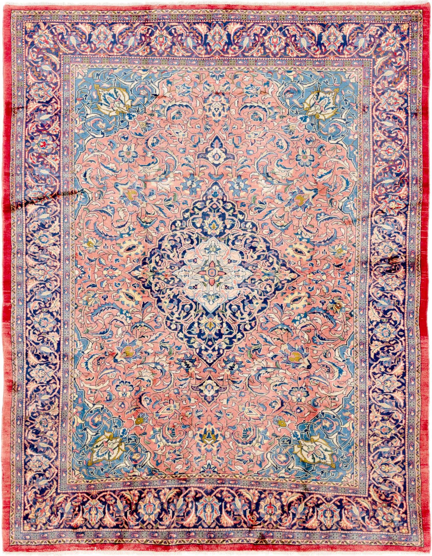 Primary color is Pink. Colors in this rug include: Pink, Beige, Blue, Brown, Gold, Green, Red, Light Blue, Navy Blue.