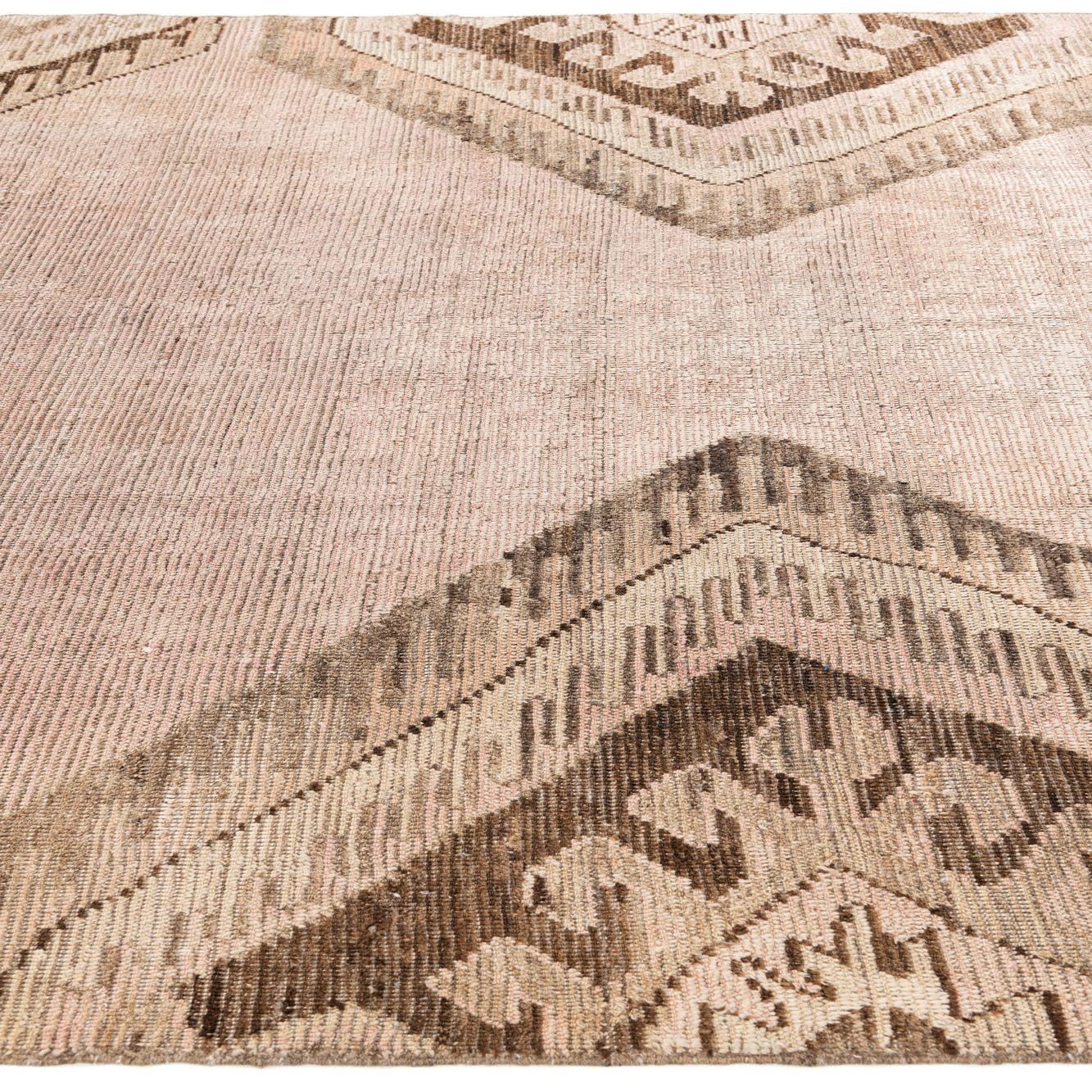 Primary color is Pink. Colors in this rug include: Pink, Brown, Beige.