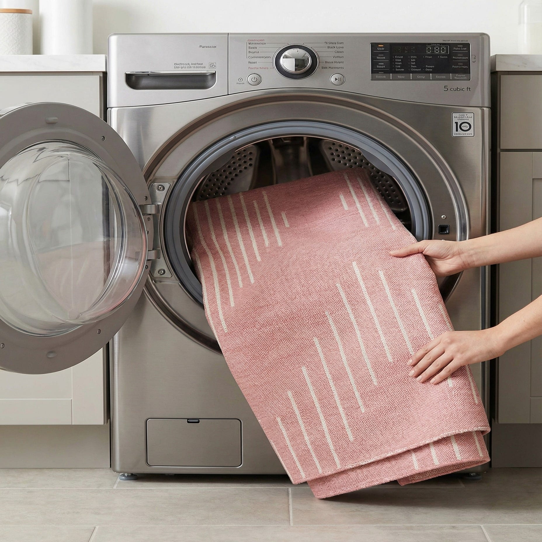 This piece works well on a covered patio or sunroom, paired with light-wood furniture and neutral cushions for a relaxed, coastal-inspired look. It also complements a modern living room or bedroom that favors clean lines and soft color palettes—think white or ivory upholstery, rattan accents, and matte metal finishes. The rug’s scale and subtle pattern make it a good anchor for a casual dining area, entryway, or a bright, modern nursery.