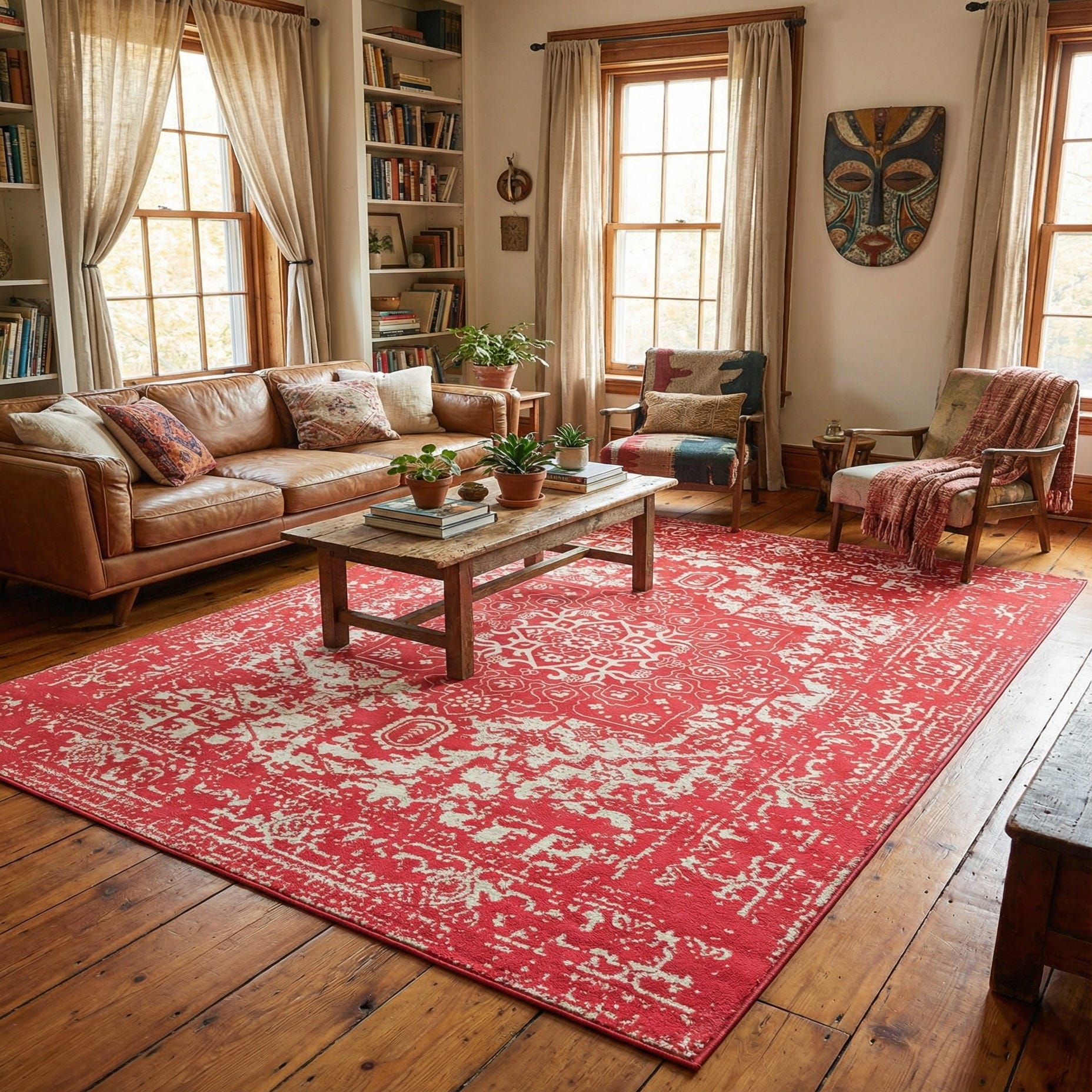 This piece works well as an anchor in a living room seating area, layered beneath a bed to add warmth to a bedroom, or as a cheerful focal point in a nursery or casual dining space. It pairs easily with cream or neutral upholstery, light or natural wood finishes, and metallic accents like brass or matte gold; combine it with linen textiles and simple, modern furniture for a fresh, balanced look, or with painted furniture and florals for a cottage or shabby-chic vibe.