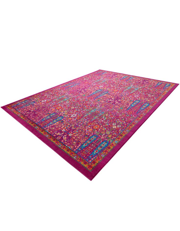 This rug brings color and pattern to living rooms, dining areas, bedrooms, or a home office that benefits from a bold focal piece. Pair it with neutral upholstery to let the pink field take center stage, or coordinate with jewel-toned accents and warm wood furniture for a more layered, eclectic feel. Its construction and finish make it suitable for high-traffic spaces where a confident, colorful statement is desired.