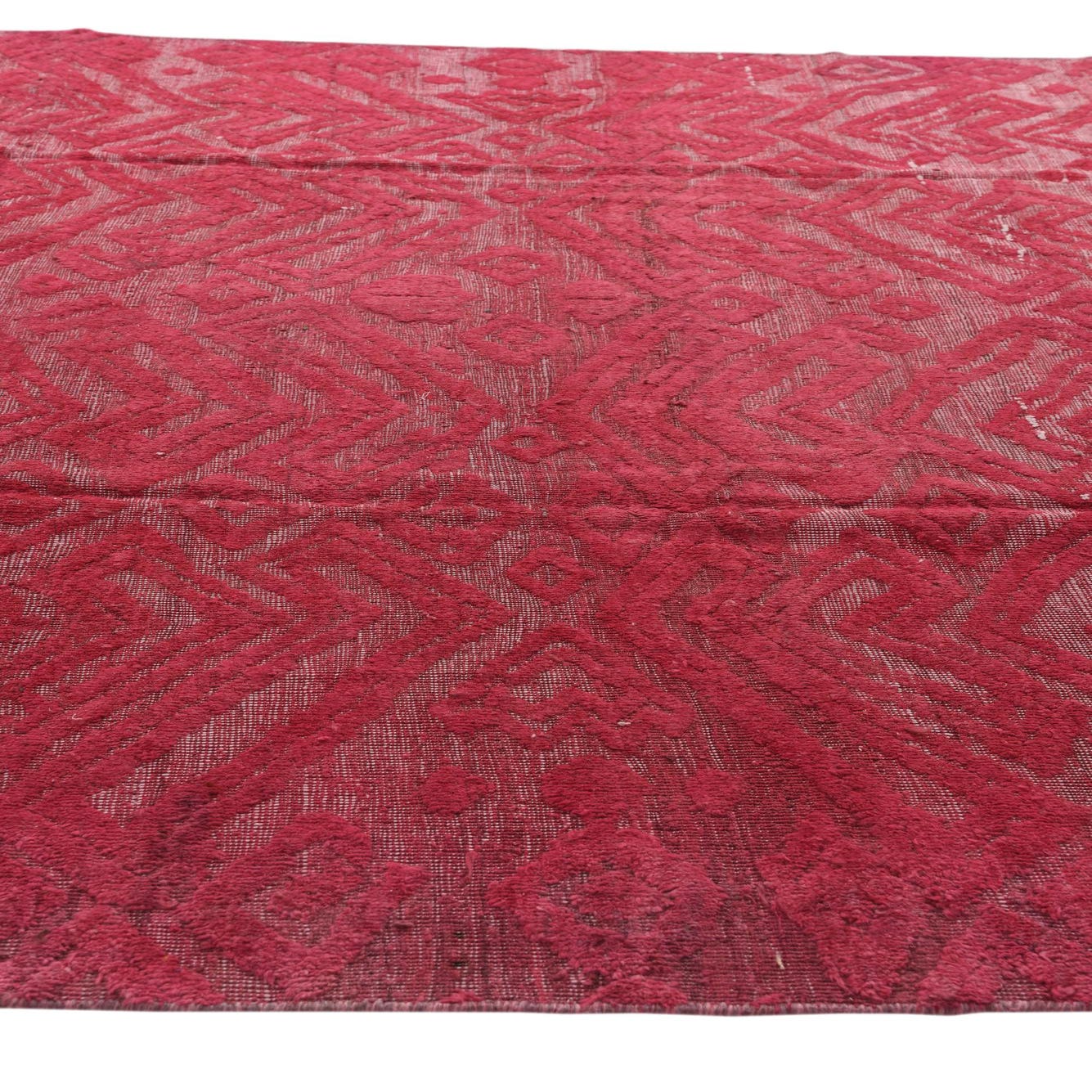 This Darya rug would work exceptionally well in an eclectic or bohemian decor scheme, where its vibrant pink tones and dynamic pattern can be used as a statement piece. It's similarly well-suited for a contemporary setting that embraces bold color and graphic prints, and it could also add a playful contrast in more subdued or minimalistic interiors. Despite its traditional roots, the modern color palette enables this rug to bridge the gap between classic and current design trends with ease.
