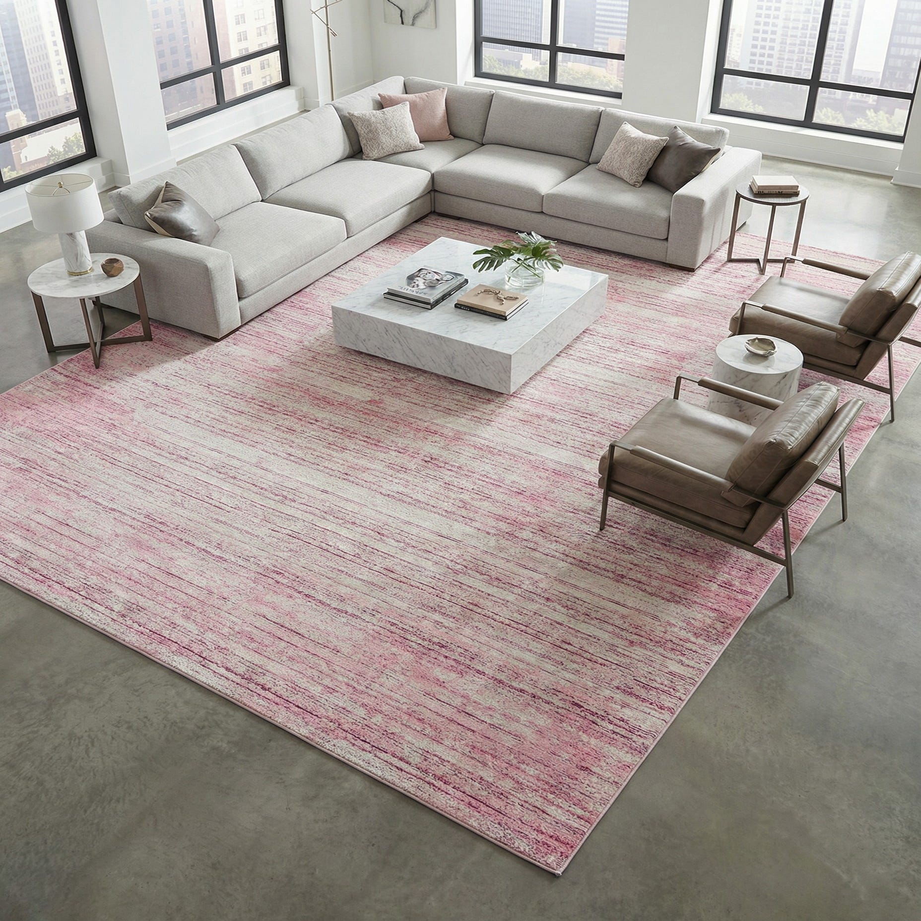 Primary color is Pink. Colors in this rug include: Pink, Ivory.