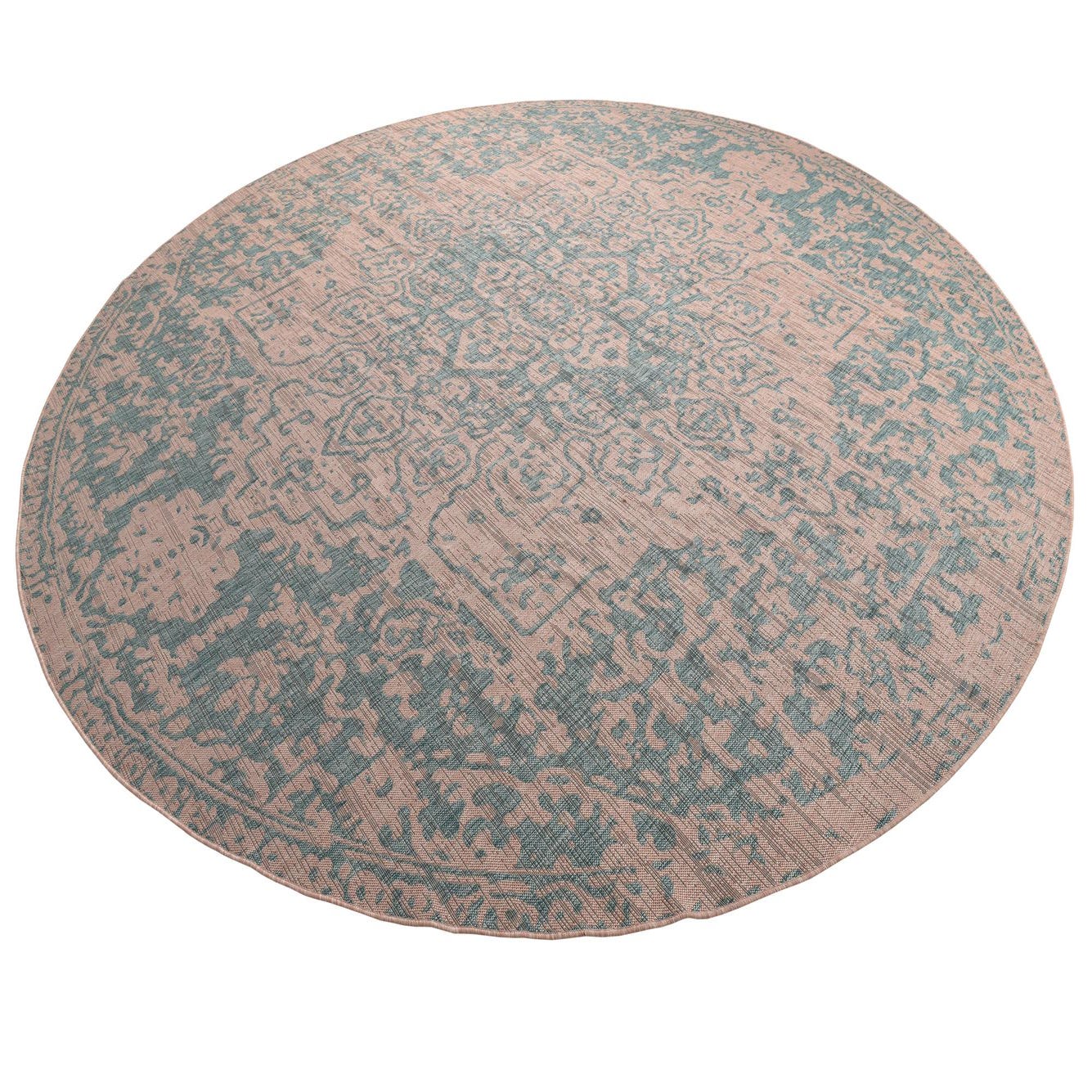 The Jill Zarin Outdoor collection presents a 13 Ft Round rug that elegantly melds functionality with style. This machine-woven piece features a durable 100% polypropylene composition, making it an ideal selection for areas that experience high foot traffic. The rug showcases a charming medallion and scrollwork pattern with the soft hues of pink and aqua creating a serene and inviting ambiance.