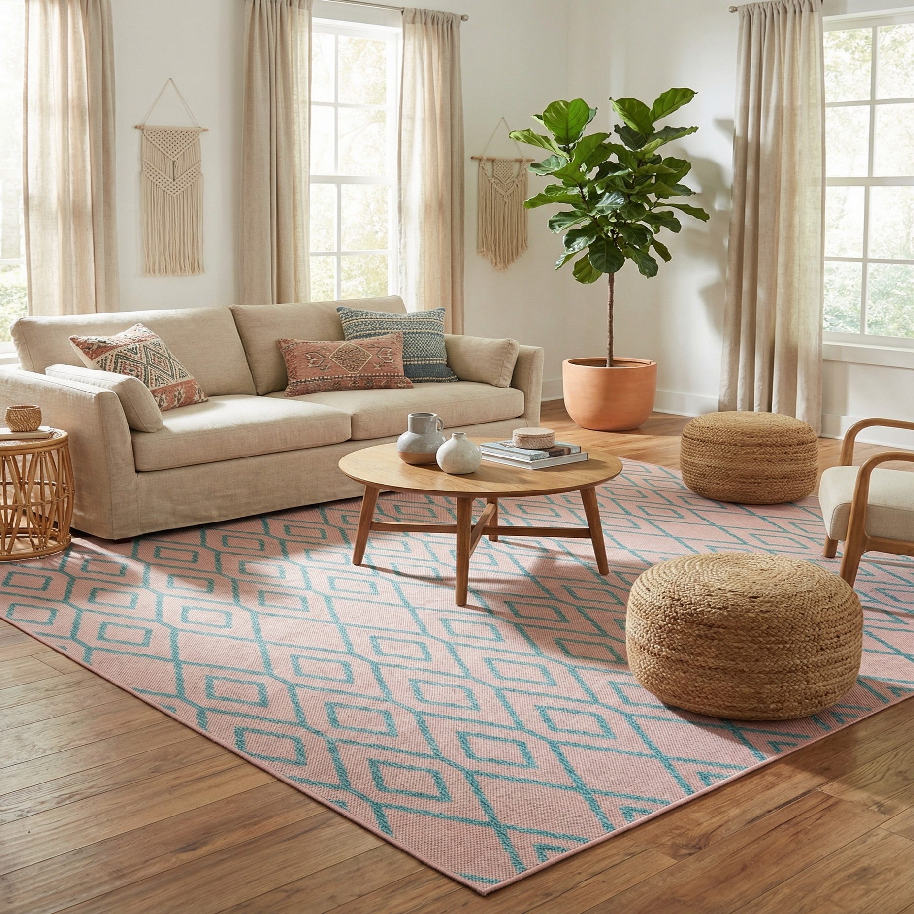 The polypropylene fibers give this rug excellent colorfastness and the ability to withstand the elements, making it an ideal choice for patios, decks, and other exterior settings. Its pet-friendly design and shed-free nature also make it suitable for busy indoor areas with high foot traffic.