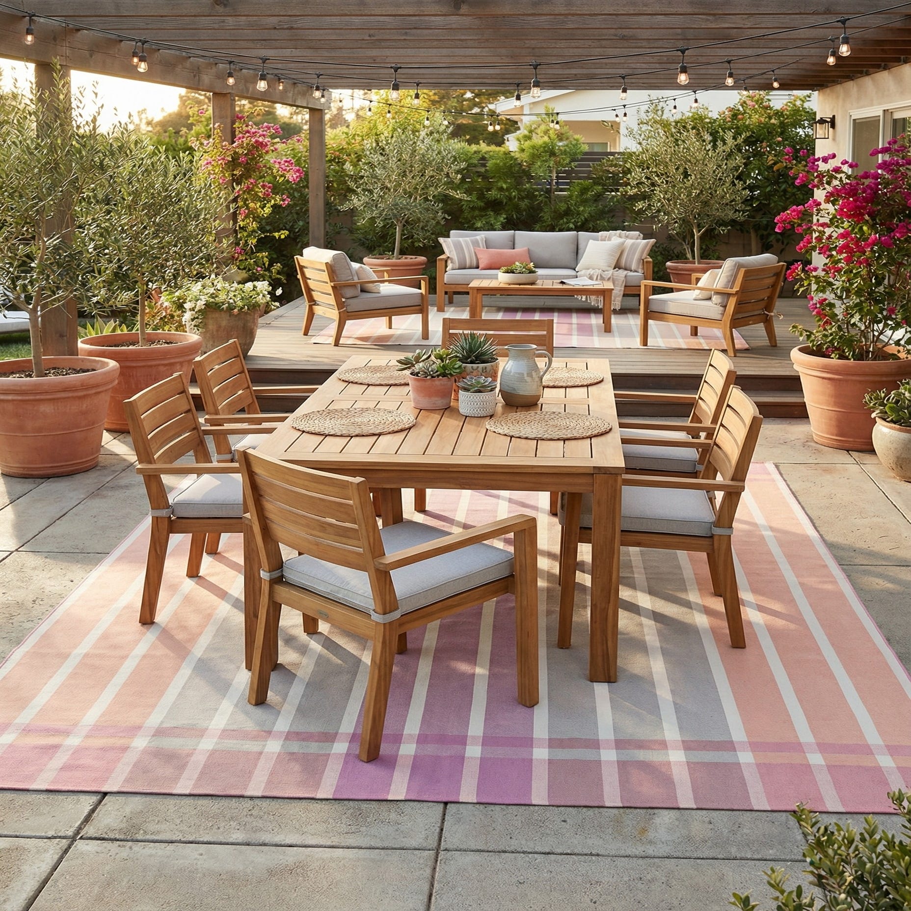 The stain-resistant nature of the rug, coupled with its pet-friendly and shed-free properties, makes it an ideal choice for high-traffic areas and homes with pets. Due to its color palette and design, this rug can seamlessly integrate with minimalist, Scandinavian, or coastal decor settings. Whether placed on a patio, deck, or within a sunroom, it combines function with a fresh, modern aesthetic to elevate any outdoor entertainment area.