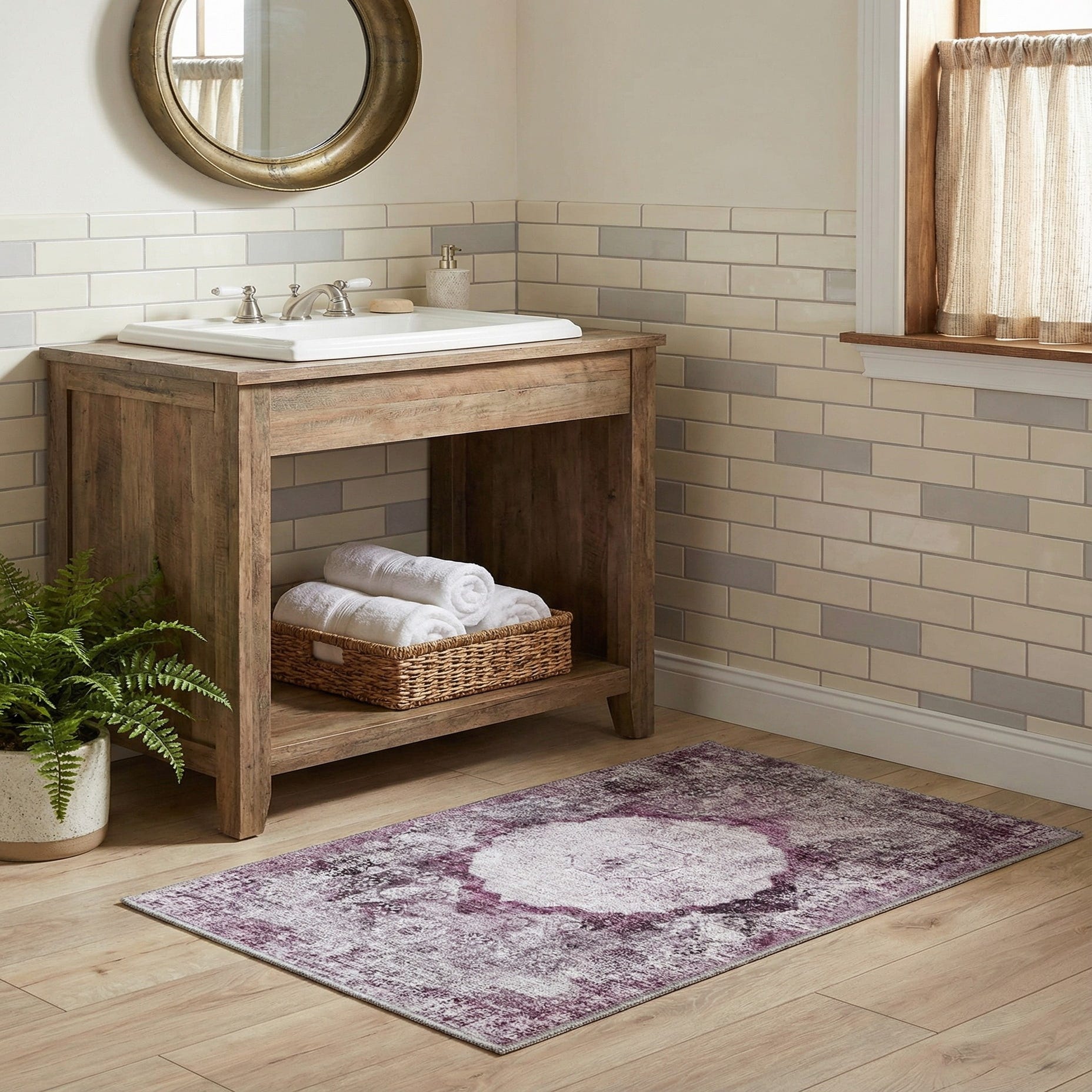 Place this piece where a touch of blush and texture will make a difference: layered beneath a small seating group, at the foot of a bed, or beside a console in an entryway. It pairs naturally with neutral palettes, gray upholstery, and light wood tones, and complements styles ranging from modern farmhouse and transitional to soft contemporary and feminine eclectic. The muted palette and relaxed pattern make it an easy accent for creating a cozy, lived-in look.
