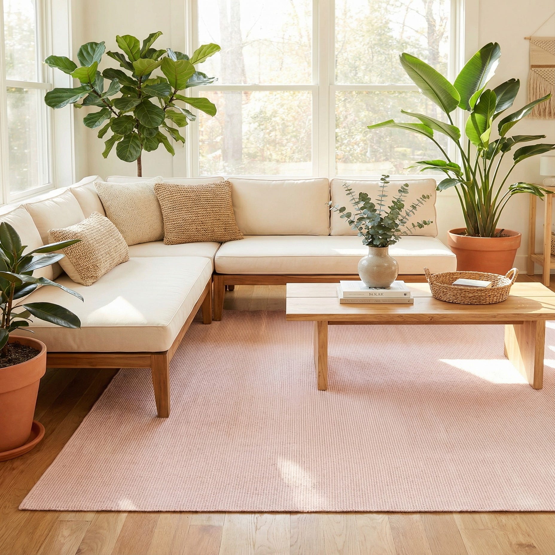 A 10x14 rectangular Jill Zarin Palm Springs Outdoor rug in a soft Pink Roses hue, featuring a subtle textured flatweave.