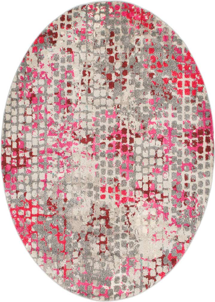 Primary color is Pink. Colors in this rug include: Pink, Beige, Brown, Gray, Puce, Red.