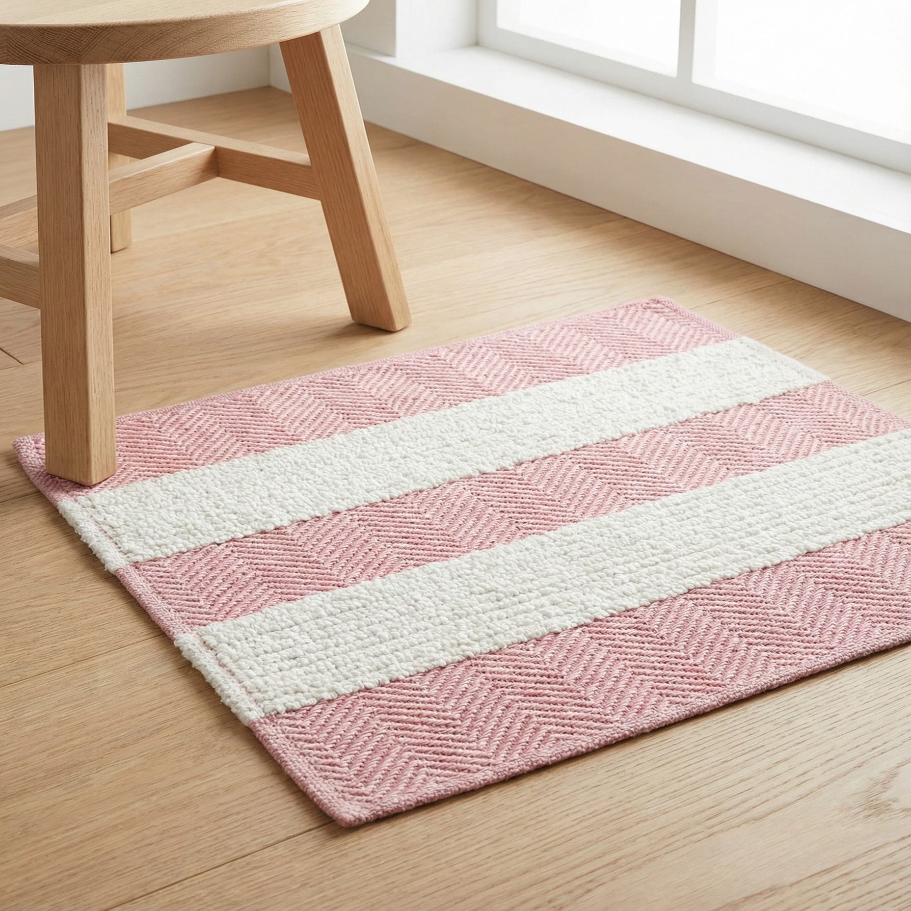 This rug pairs well with light-wood furniture, warm neutrals, and airy fabrics—ideal for a nursery, a feminine or modern bedroom, or a casual living room seeking a soft, layered look. It also complements coastal, cottage, or Scandinavian-inspired interiors where a restrained color palette and simple patterning are key.