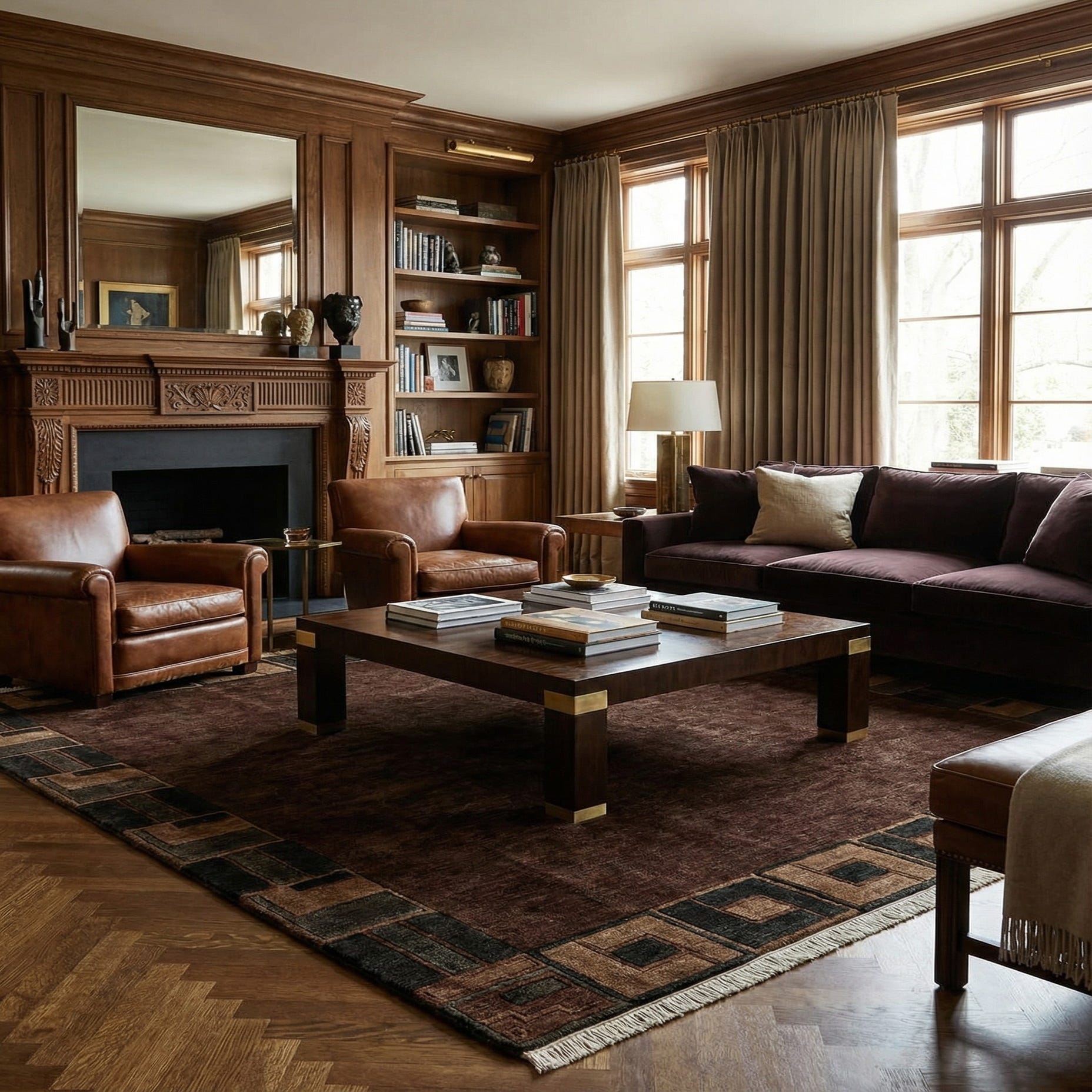 Primary color is Plum Red. Colors in this rug include: Plum Red, Black, Brown.