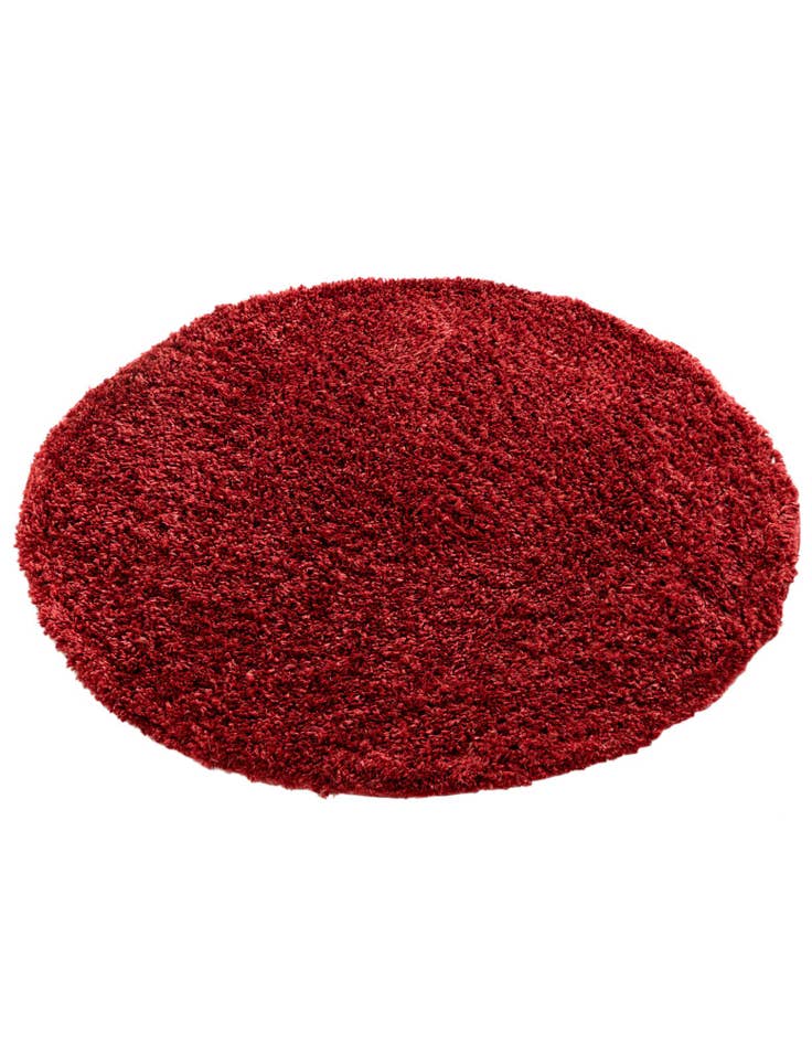 A vibrant red 4' round shag rug, made from polypropylene, showcasing its plush, textured pile against a white background.
